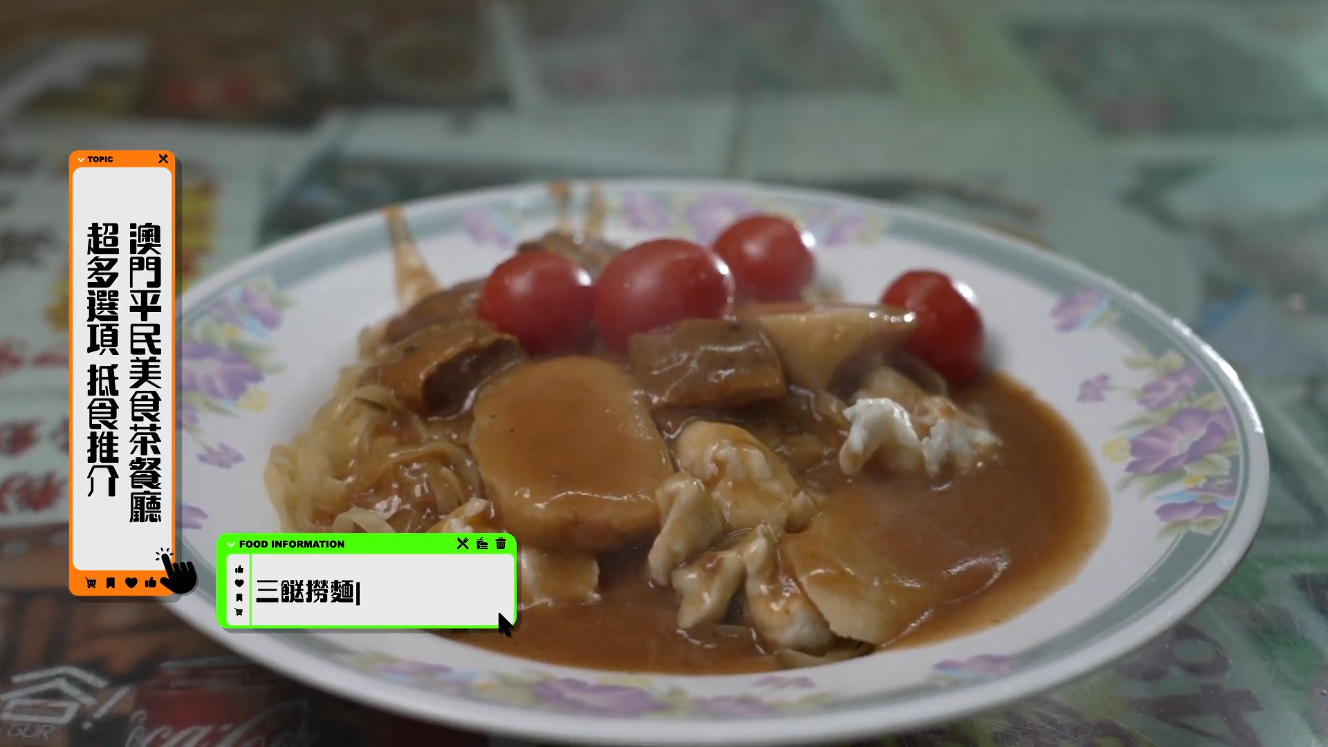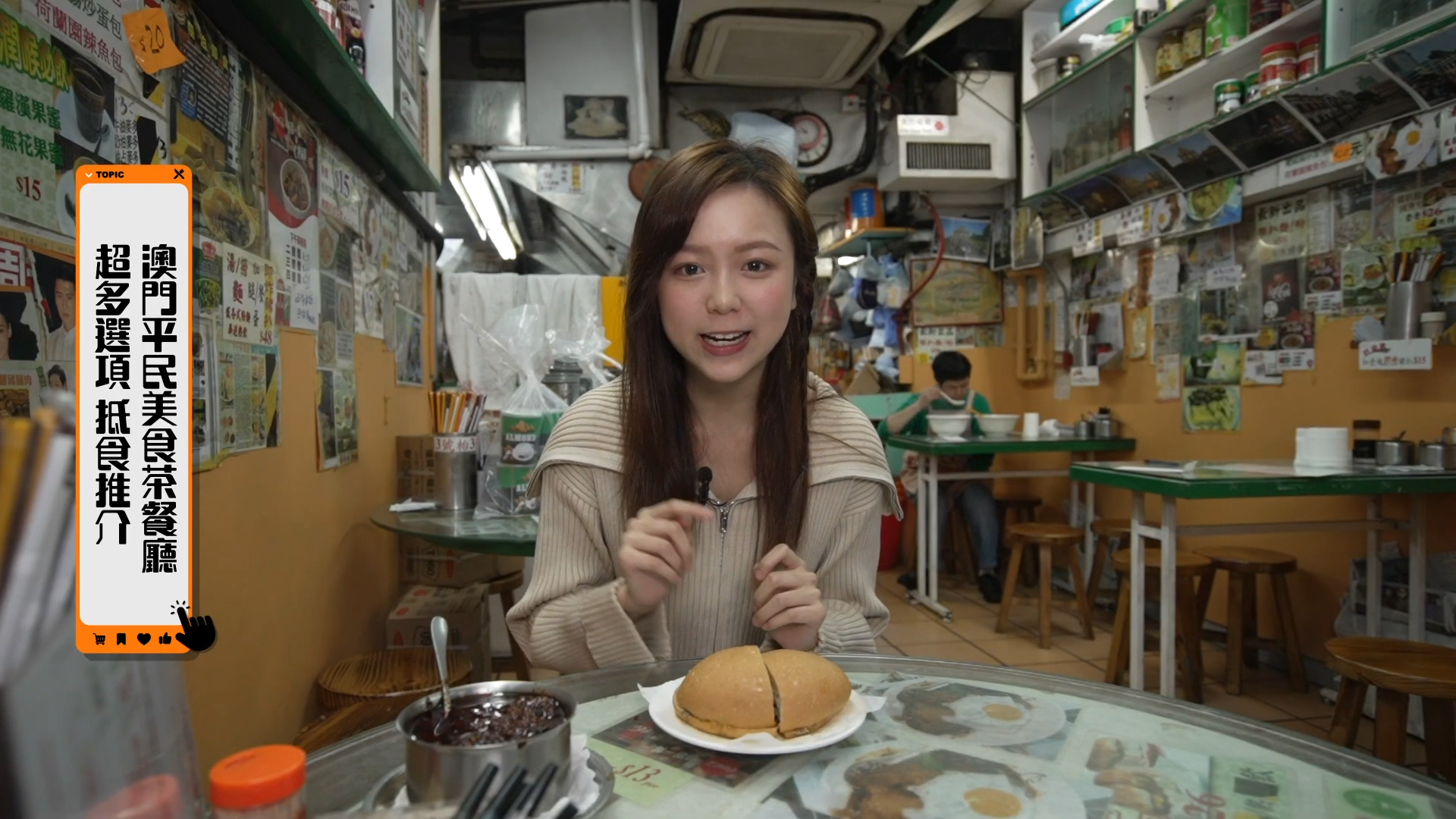 今集,還有胡敏芝(Karen)帶大家到中環一間主打澳門平民麵食的茶餐廳,她先點了三餸撈麵,更選了較少地方吃到的餸馬交魚羹肉和鹽香車厘茄,「麵好爽口,馬交魚羹肉好實淨,同埋好嫩。而鹽香車厘茄,類似食意大利粉果陣嘅車厘茄,令車仔麵多咗酸甜口感,好特別。」