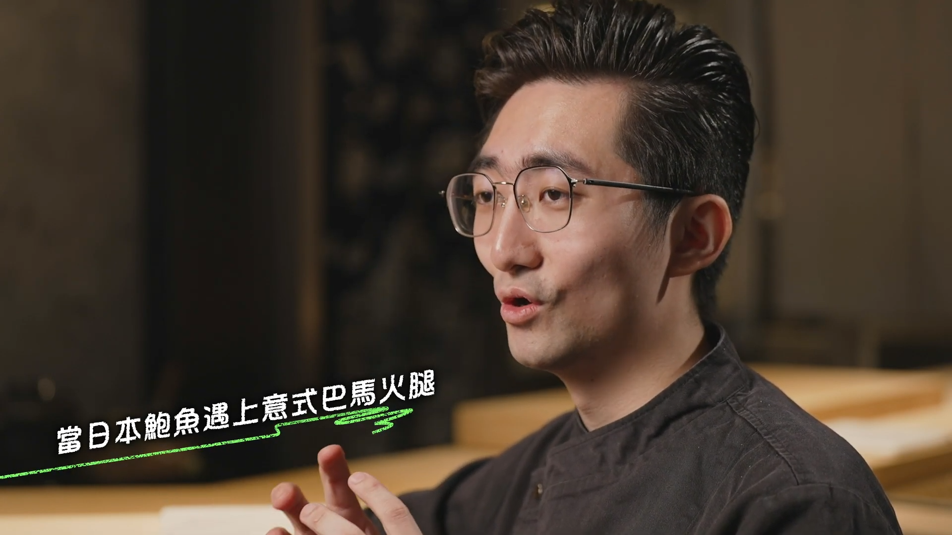 有時見到餐廳的菜式會融入了意大利元素,例如巴馬火腿昆布湯煮鮑魚,因為Zinc的起步點正正就是意大利菜,「意大利會用豬肉等配貝類去做料理,我哋試下貝類之王鮑魚,配上意式巴馬火腿做高湯去煮鮑魚,有啲鹹香味!」製作方法是清潔完日本鮑魚,再加上昆布、巴馬火腿去煮,用類似燉的做法,煮3-5個鐘,視乎鮑魚的大小,而鮑魚亦吸收咗湯的精華。![]()