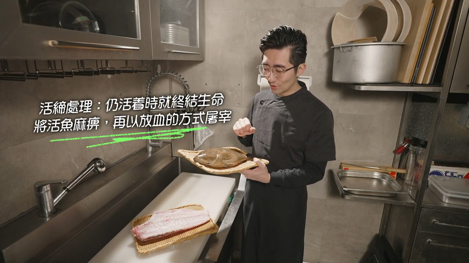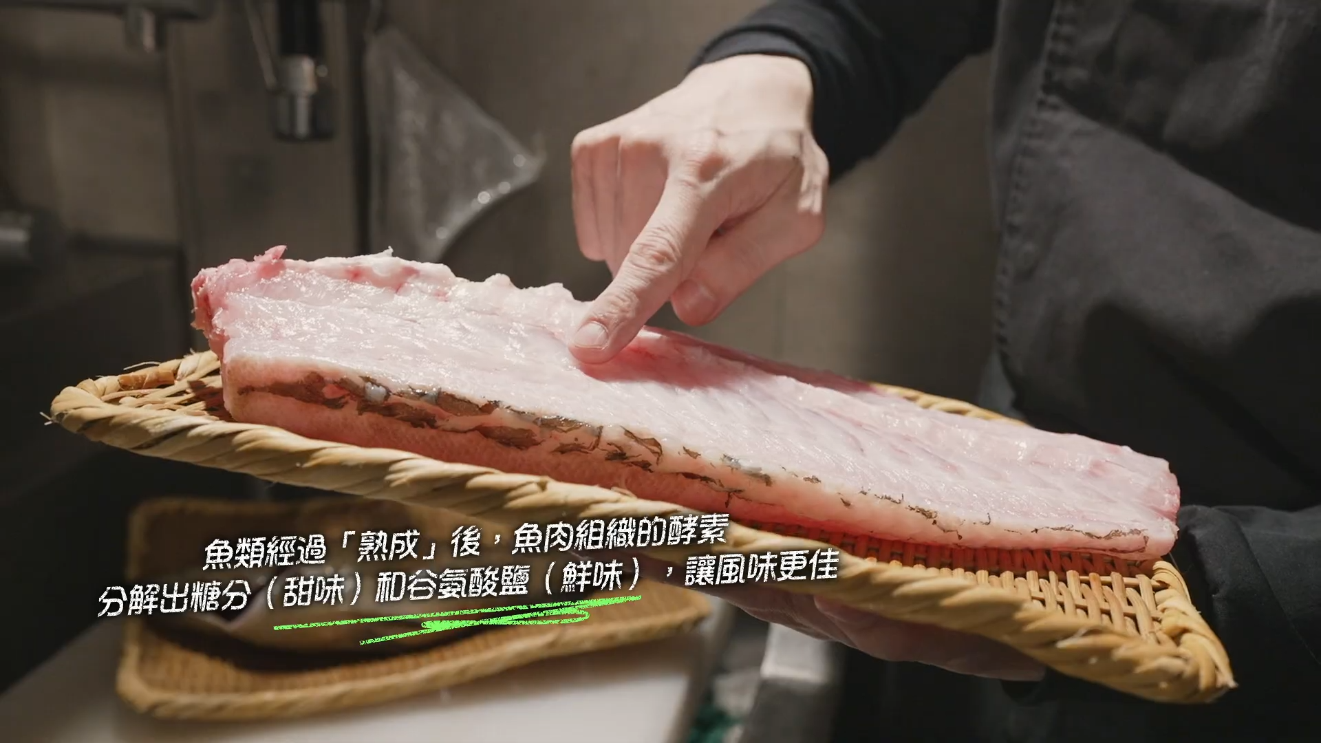當然,要把魚製成刺身,處理步驟很重要,Zinc舉例解釋,這條芝麻斑來自長洲,會用活締處理,即仍活着時就終結生命,將活魚麻痹,再以放血的方式屠宰,「因為血係影響魚味唔好食嘅最大因素之一,亦不利於熟成。」原來魚經過熟成後,魚肉組織的酵素,分解出糖分(甜味)和谷氨酸鹽(鮮味),讓風味更佳。![]()