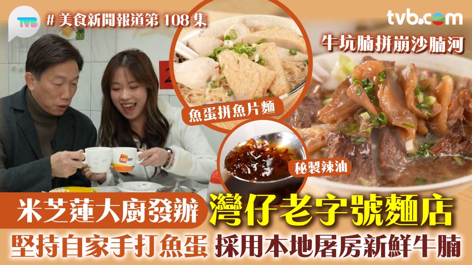 今集《美食新聞報道》「大廚發辦」由米芝蓮一星餐廳行政總廚陳佑良師傅帶路搵食!陳師傅帶領黃婧靈(波波)去到灣仔譚臣道一間潮式粉麵舖試味。這間店舖不單止歷史悠久,且老闆堅持日日採購新鮮食材手打魚蛋。熱奶茶配搭牛腩麵是陳師傅的必點,奶茶的味道幾十年如一,完全符合靚奶茶的三大要素,即茶香細膩、口感幼滑、回甘層次。