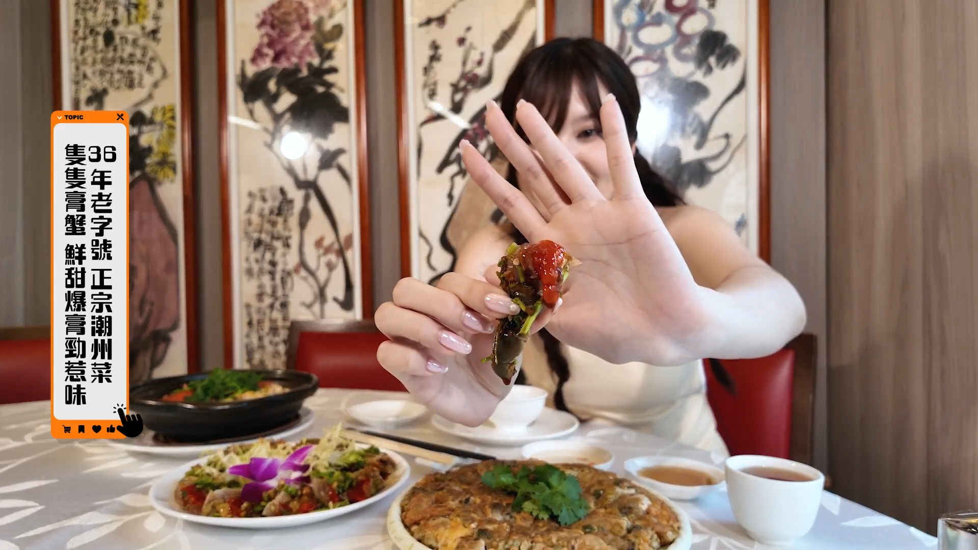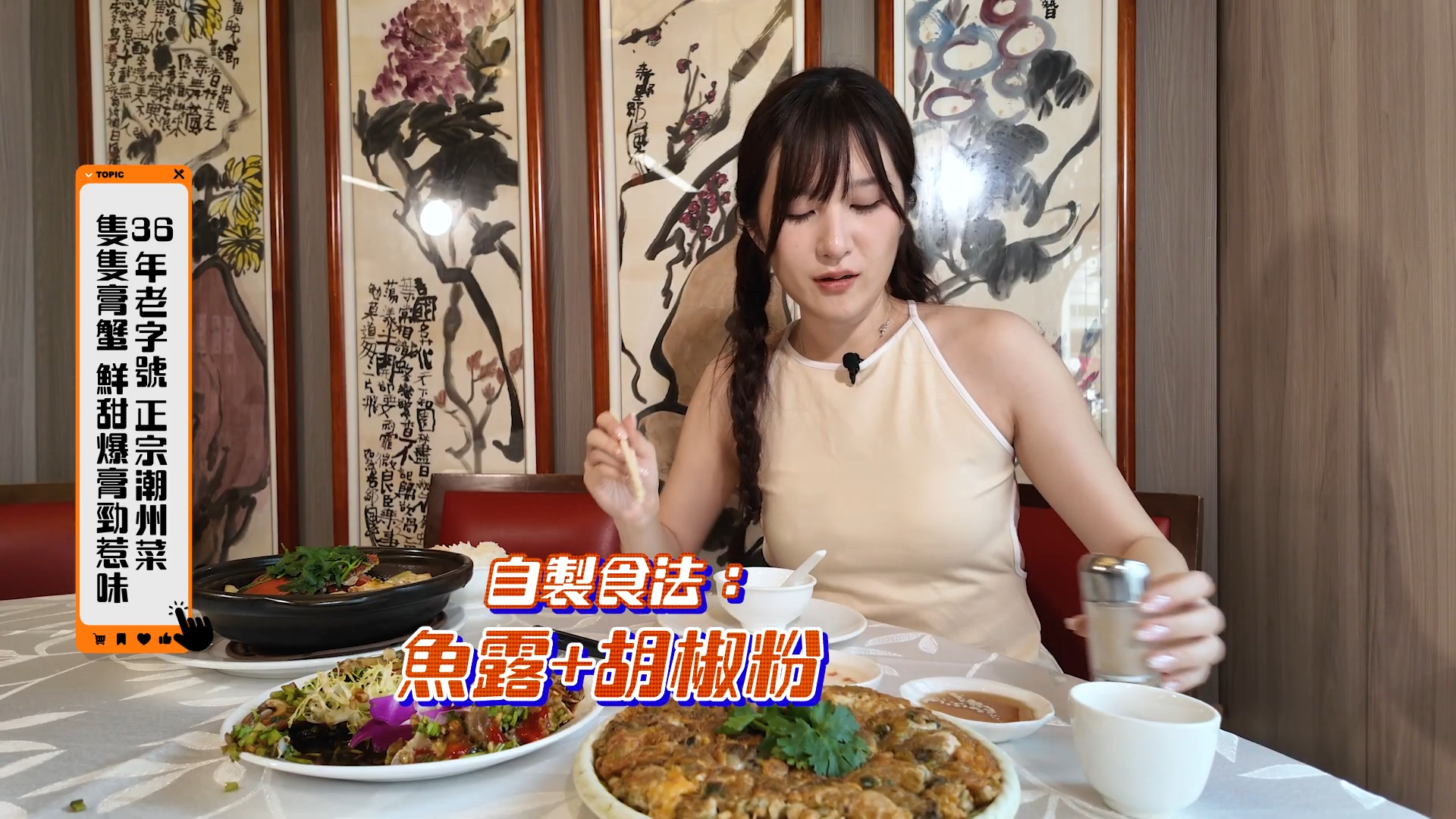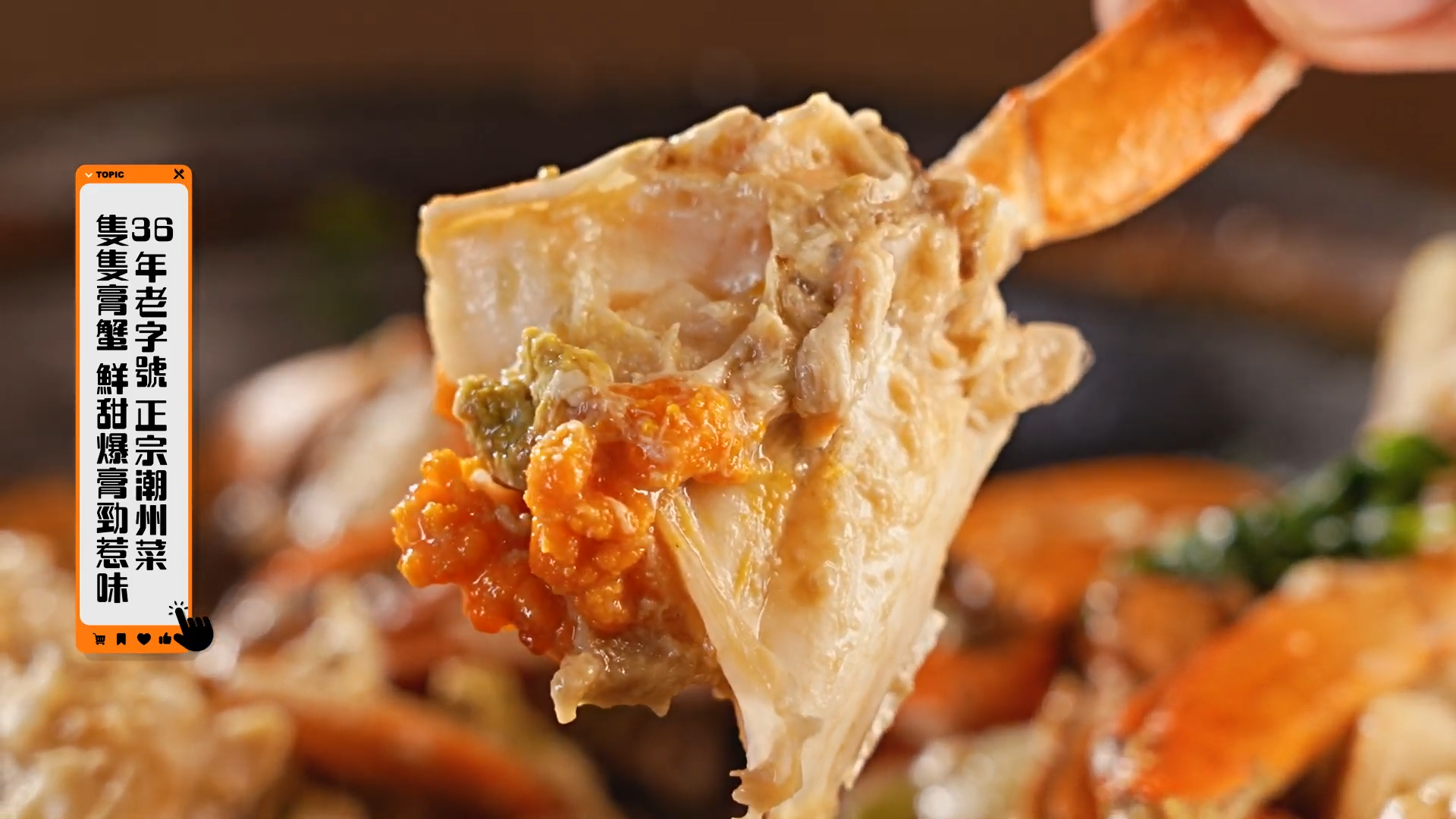 今集還有鞏姿希(Krystl) 帶大家到尖沙咀北京道,一間蔡瀾都推介的36年老字號潮州菜館。這間菜館的蟹,隻隻都鮮甜爆膏!以生醃膏蟹為例,滿滿的蟹膏,加上嫩滑的蟹肉,味道鹹辣適中,送飯一流!![]()
