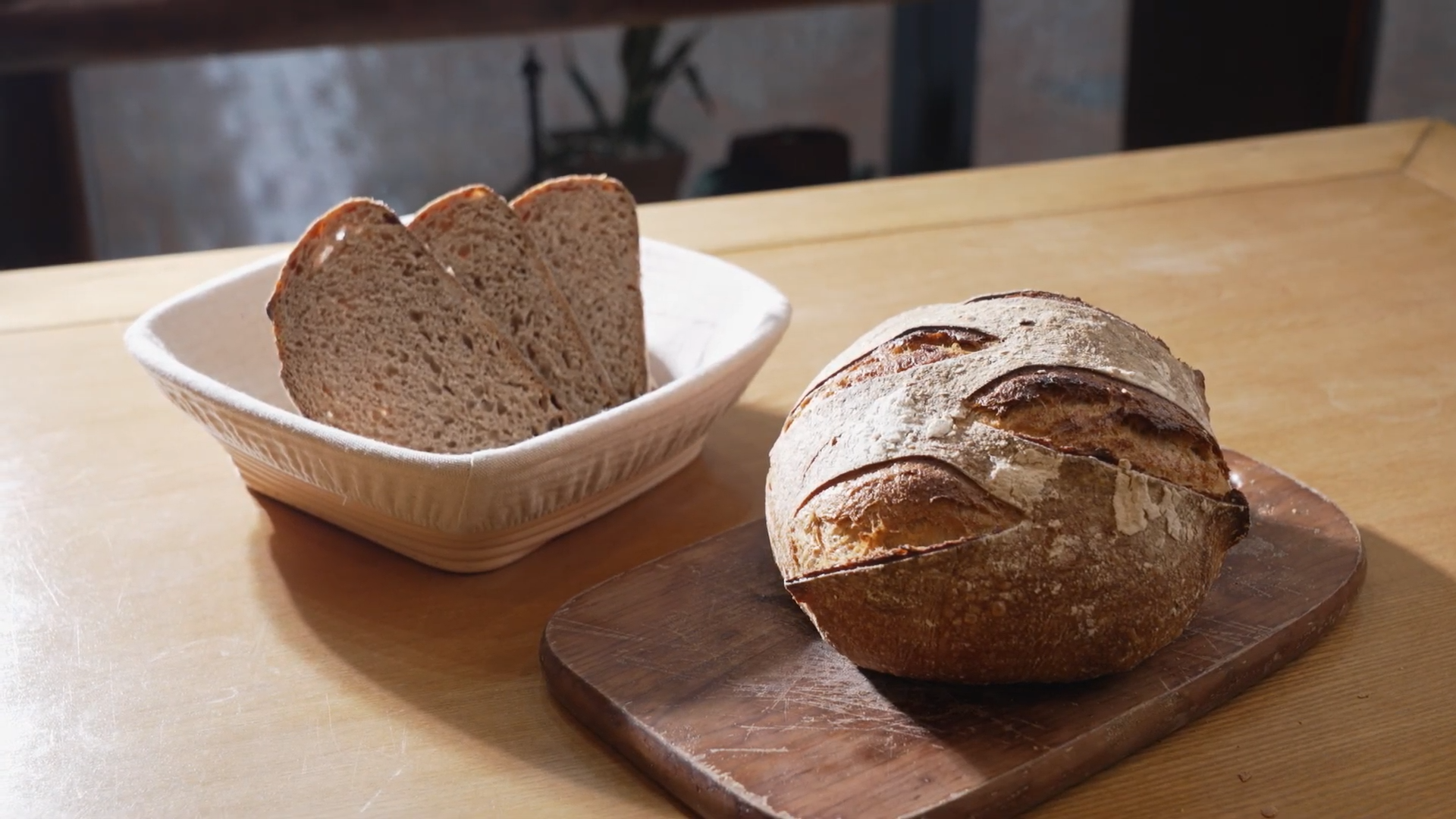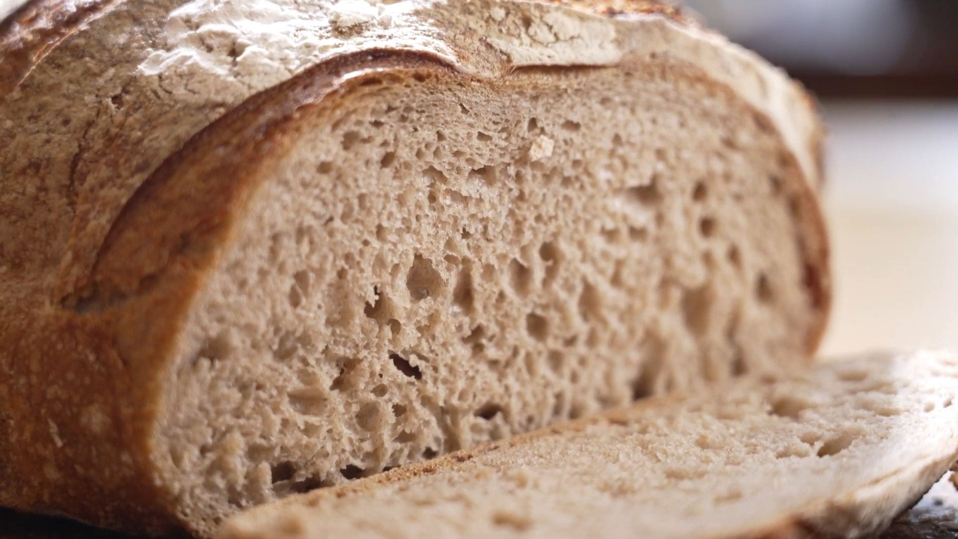 酸種麵包是近期大熱的麵包,KC指:「先睇外皮,其次睇顏色,正常係深褐色。切開包,睇下入面啲組織。但唔一定有大氣泡就係好,有時我哋食佢個香,或者可能會食幾日,要求就唔同,就唔會要求大氣泡,而要綿密,均勻,中或偏細氣孔。」![]()