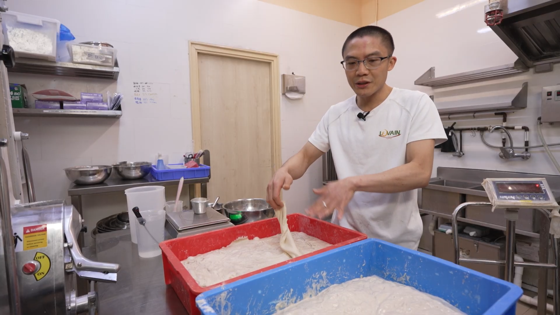 物理系出身的KC在製作麵包時,都注入了科學精神。以法包為例,KC就用了三種麵種來製作,第一種是讓麵粉吸飽水,「第二種係天然酵母種加鹽,呢個係我哋發明嘅,我哋叫佢鹽種。第三種就係放喺室温過夜,麵粉同水結合後,會增加麵團延展性。透過呢三款麵種嘅比例,我哋控制到個法包嘅香味同質地。」![]()