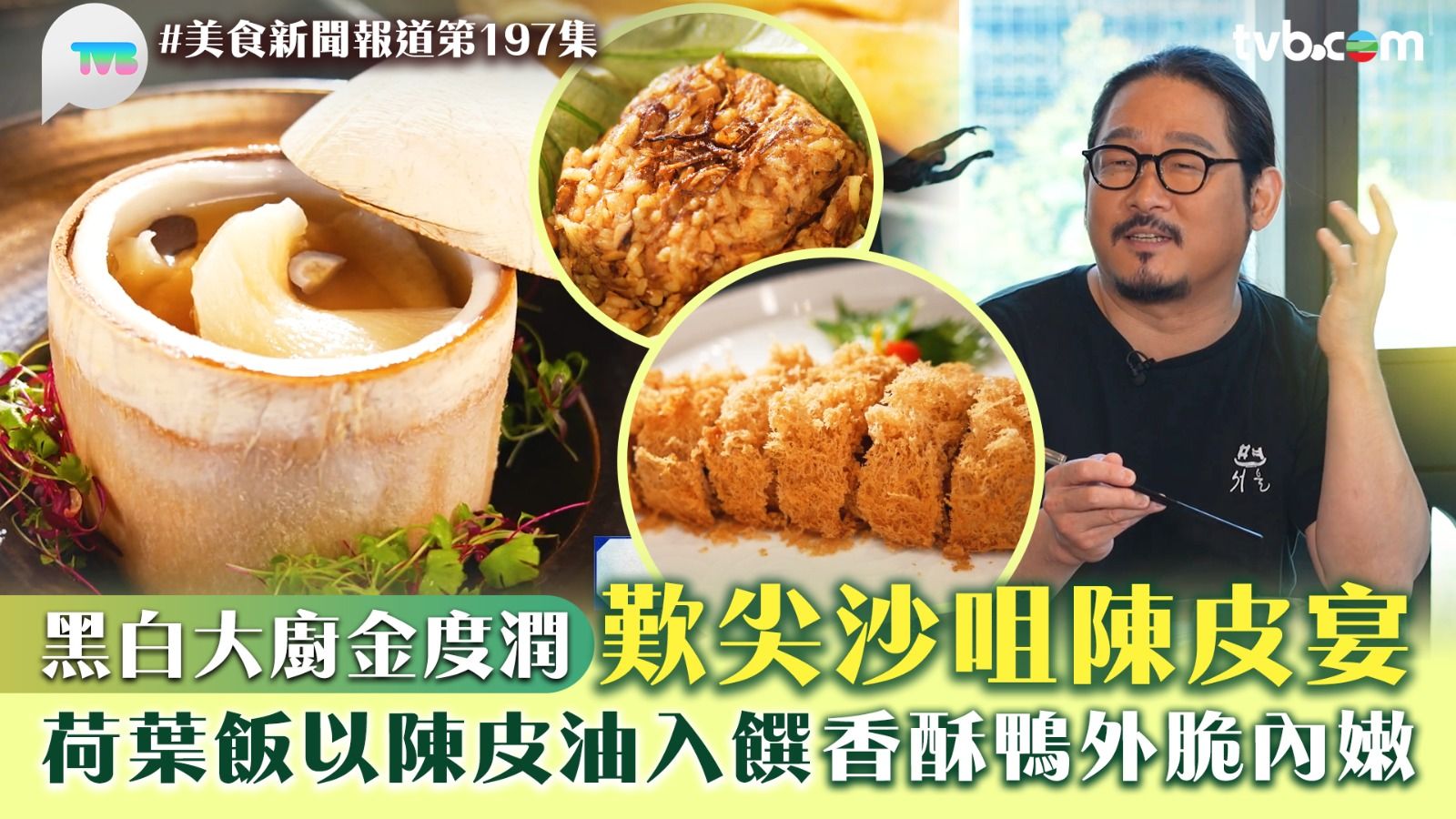 《美食新聞報道》今集由韓國超人氣美食節目《黑白大廚:料理階級大戰》中,一星米芝蓮廚師金度潤擔任嘉賓,聯同食評家謝嫣薇(Agnes)、蔡景行(行仔)去尖沙咀品味「陳皮宴」。每道菜都以陳皮入饌,椰皇鮮角螺竹笙燉花膠,散發椰子的清香,湯鮮味美; 二十四年東甲陳皮芋蓉香酥鴨, 陳皮的香氣完美融入鴨肉之中,加上酥脆芋蓉,層次豐富!西甲十年陳皮飄香荷葉飯,金大廚對其讚不絕口「香味大爆發」、「好好味啊!」