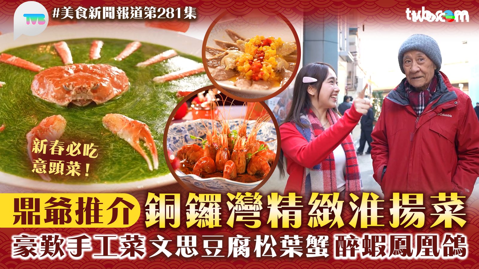 今集《美食新聞報道》有天大面子請來李家鼎(鼎爺),聯同主持林映暉(暉哥)陪大家殺入銅鑼灣搵食!餐廳主打淮揚菜,特別講究精湛刀工和擺盤,首先上菜是「文思豆腐松葉蟹」,菜式寓意鴻運當頭,松葉蟹放入口鮮味十足,配搭菠菜汁、蛋白和豆腐,口感細膩又有層次,簡直一流享受;之後到「雕皇醉香蝦」現身,蝦膏鮮味霸佔口腔,爽口又彈牙,而且配搭雕皇酒混合大曲酒醃製,令甘甜味道昇華,絕對是必試菜式;最後「雙剁椒鳳凰鴿」上菜,菜式講求慢煮鎖住水份營養,入口肉質非常嫩滑,皮脆多汁,單看賣相就知廚師刀工了得,絕對頂級享受!