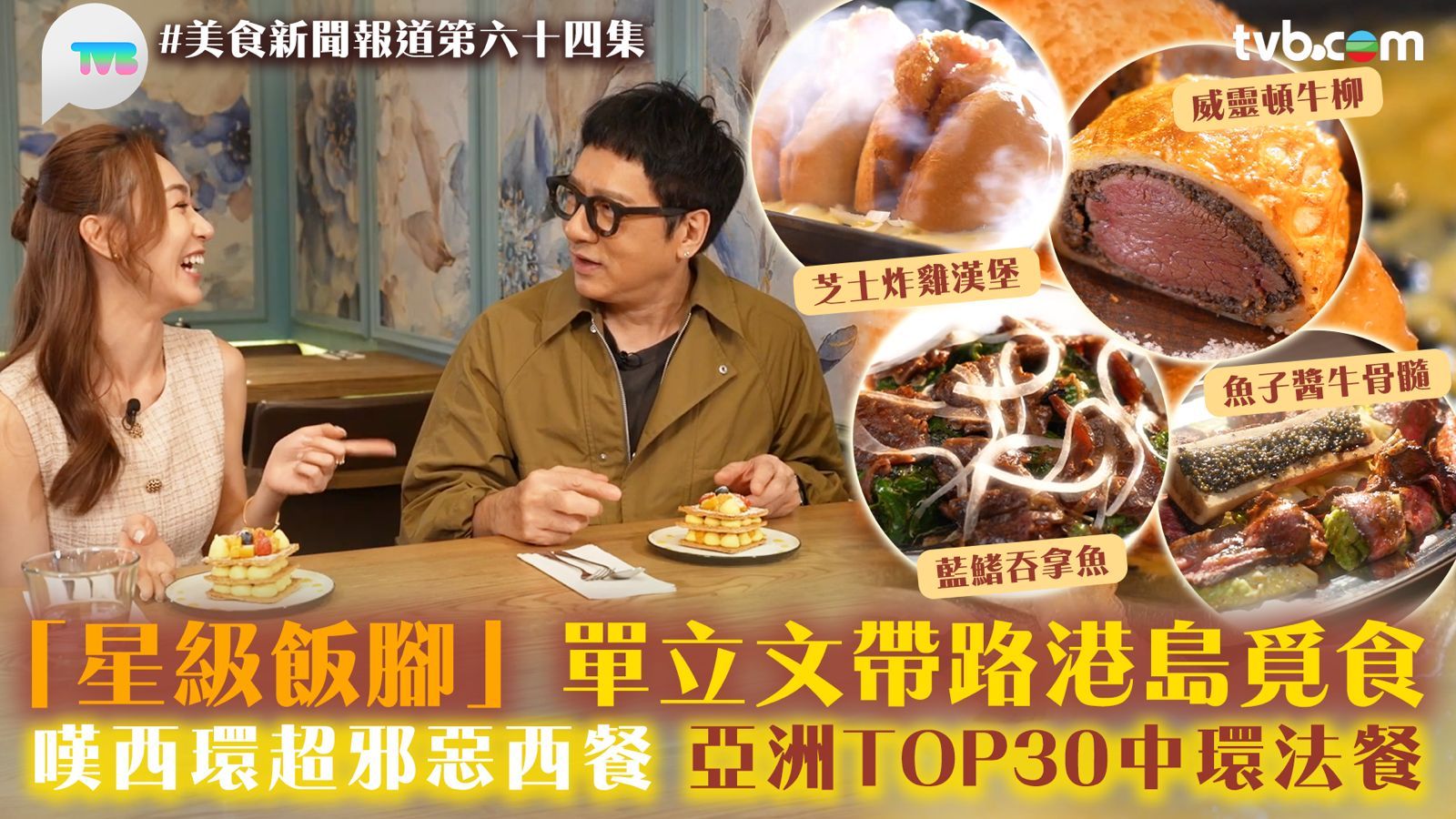 今集《美食新聞報道》的「星級飯腳」由豹哥單立文帶路搵食!豹哥向Carmaney黃嘉雯推介充滿歐陸風情餐廳。第一道,鐵板芝士炸雞漢堡,淋上滿滿的芝士,超邪惡!雞扒炸到相當酥脆,加上洋蔥,將鮮甜與鹹香融合得恰到好吹,震撼味蕾。威靈頓牛柳,需要提前兩日預定,外面包裹一層脆卜卜黃金酥皮,裡面則是嫩到爆汁的嫩滑牛肉。甜點方面,有新鮮出爐芒果拿破崙,外皮酥脆,口感一流呀。