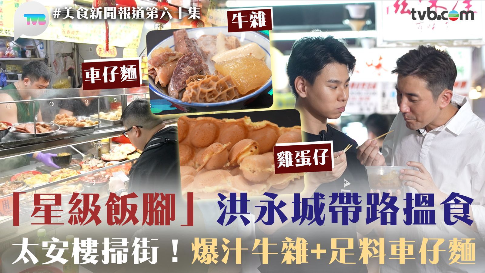 掃街是香港重要的流行飲食文化,今集《美食新聞報道》將進行掃街大挑戰!黑方代表由行仔蔡景行代表,白方代表則由有30年掃街經驗的「筲箕灣掃街王」洪永城代表。Tony推薦他自認為最好吃的車仔麵,豐富配菜包括,豬腸、炸肉餅、冬菇、咖喱魷魚等。韭菜豬紅,湯汁加了豬油特別香。另外出名的雞蛋仔,格仔餅,外脆內軟,還有砂糖,超級邪惡。新鮮出爐的芝士雞蛋仔,內部質感像麻薯,還有芝士的鹹香味,慢慢滲出來。第三站牛雜店,牛心腚,超爽口,蘿蔔鮮甜入味又爆汁。