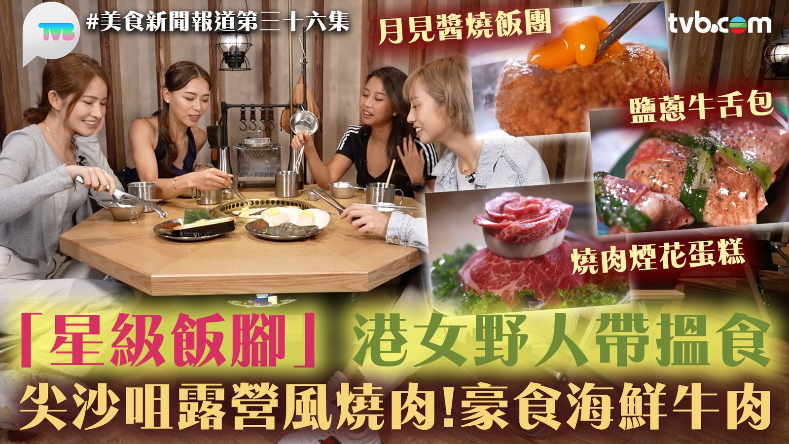何泳芍(Honey)、胡美貽(Nicole)、廖慧儀(Jessica)和陳若思(Amber)在拍攝節目《港女野人》後,感情要好。今次她們更成為《美食新聞報道》的「星級飯腳」,齊齊到尖沙咀一間以豪華露營為主題餐廳,店內由裝修,到餐桌、置物架等都是走「露營風」!讓她們不禁想起拍攝《港女野人》和《港女野人奇異記》時的趣事!![]()