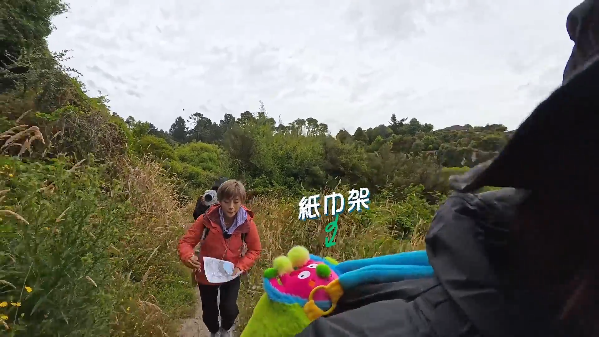 此時,Jessica舉手想要紙巾,Honey即提醒她在桌上置物的架有。這也讓她們想起拍《港女野人奇異記》時,導演阿青所揹的背包。![]()
