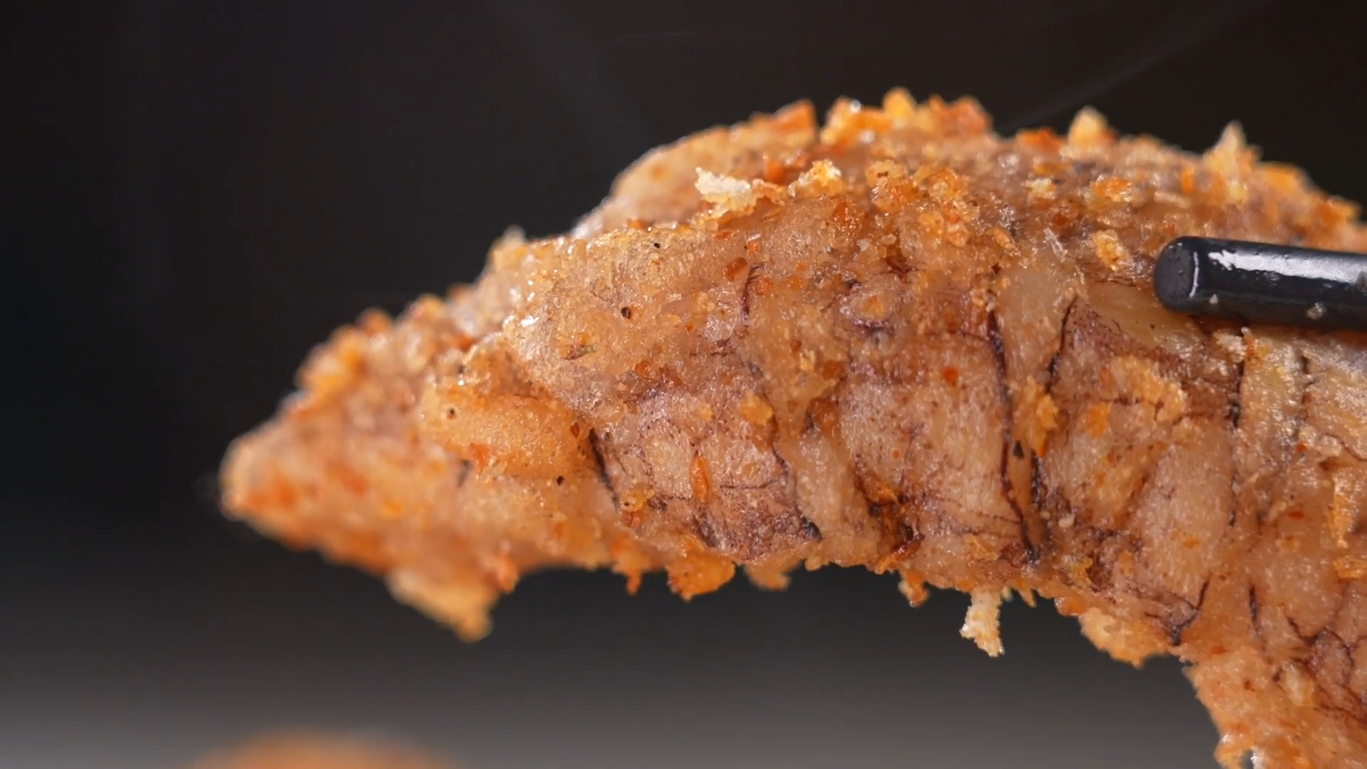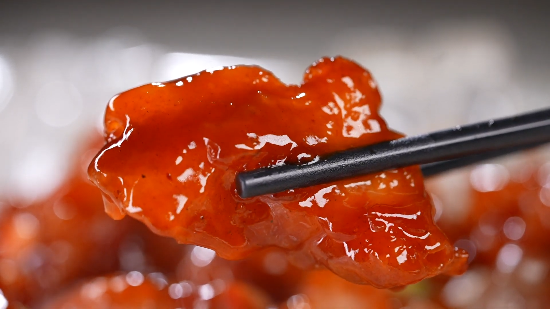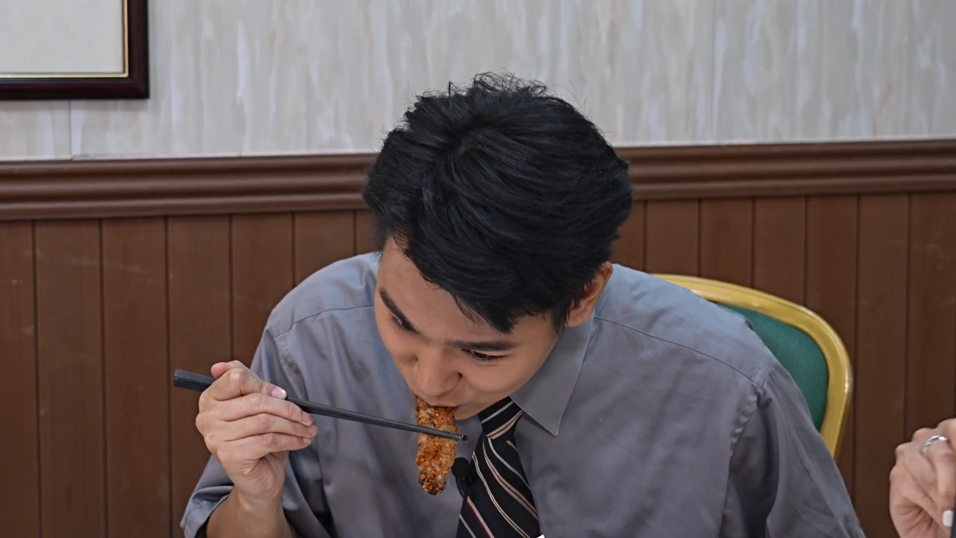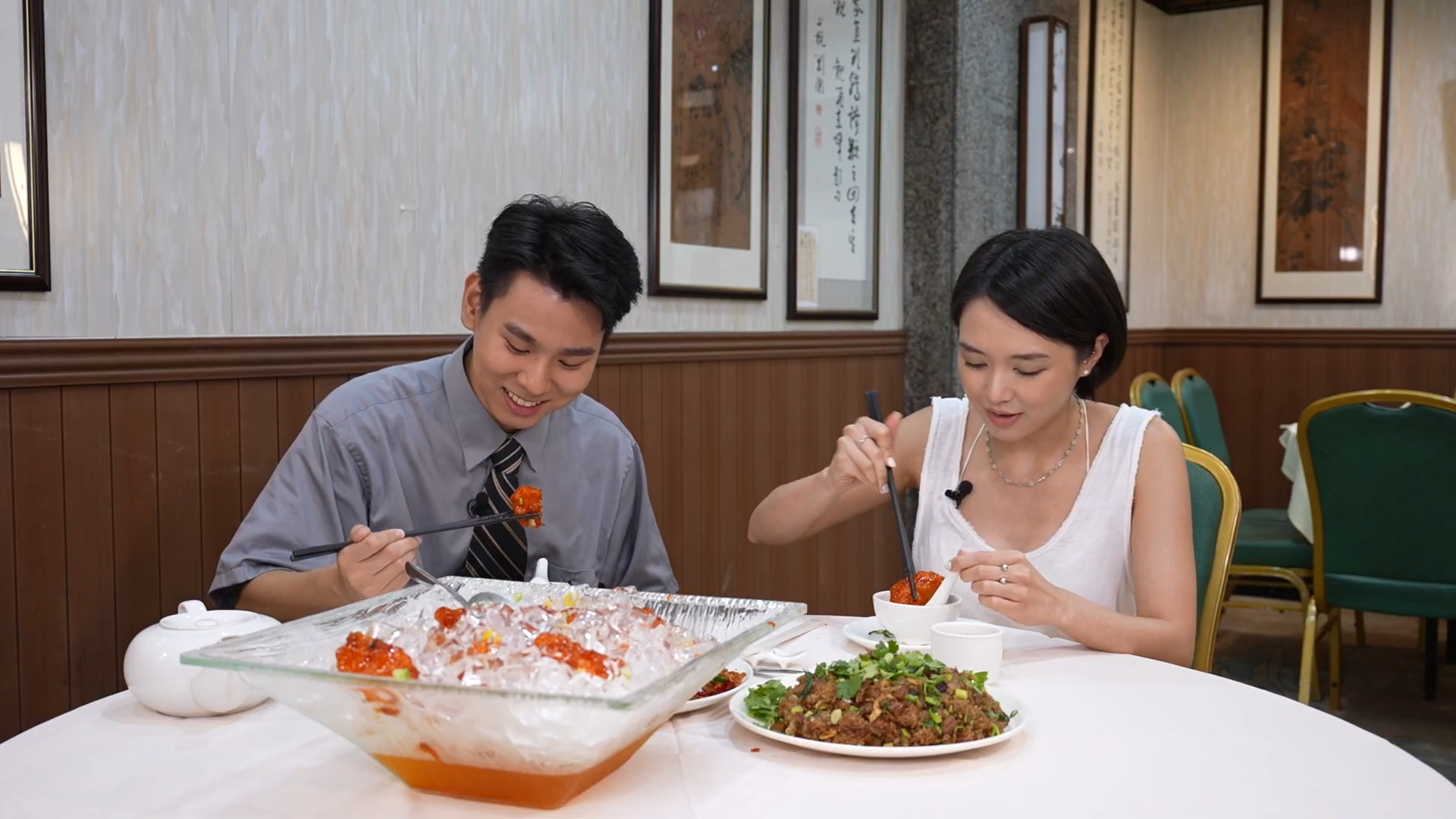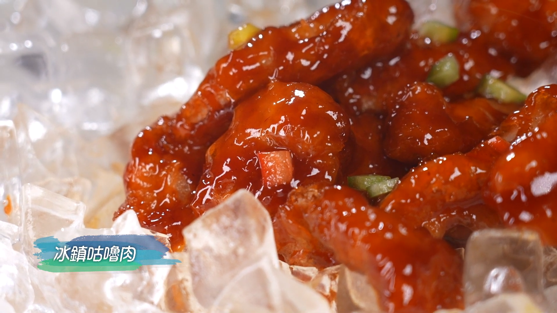 行仔看到賣相特別的「冰鎮咕嚕肉」即一臉期待,Cecilia提醒這道菜要先冰敷一下,肉才會更脆。行仔試食一件後,忍不住讚嘆:「嘩⋯⋯好好食!」,Cecilia笑問:「定係戲嚟架?」行仔忍笑說:「我啲戲唔好。」Cecilia笑着認同:「好浮誇喎你!」行仔接着讚:「佢冰鎮咗一陣,個皮已經唔係佢認識嘅咕嚕肉,外面脆到有啲似餅乾,同埋凍咗之後,個酸酸甜甜味更出。」![]()