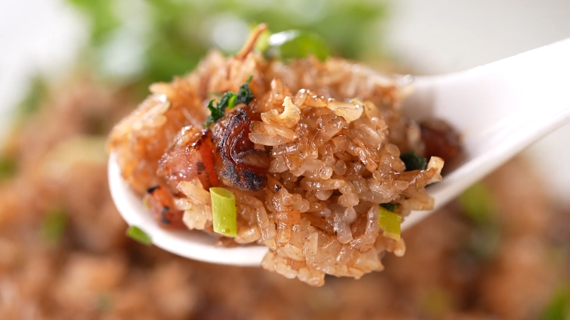 當「生炒糯米飯」上桌時,Cecilia才醒起自己忘記走青,但指可以慢慢夾走佢,行仔笑言:「好呀,呢個係好有情趣嘅活動。」,Cecilia聽後開懷大笑。這碟糯米飯加入了炒蛋絲,口感變得豐富,而且飯粒不會太硬,粒粒分明。![]()