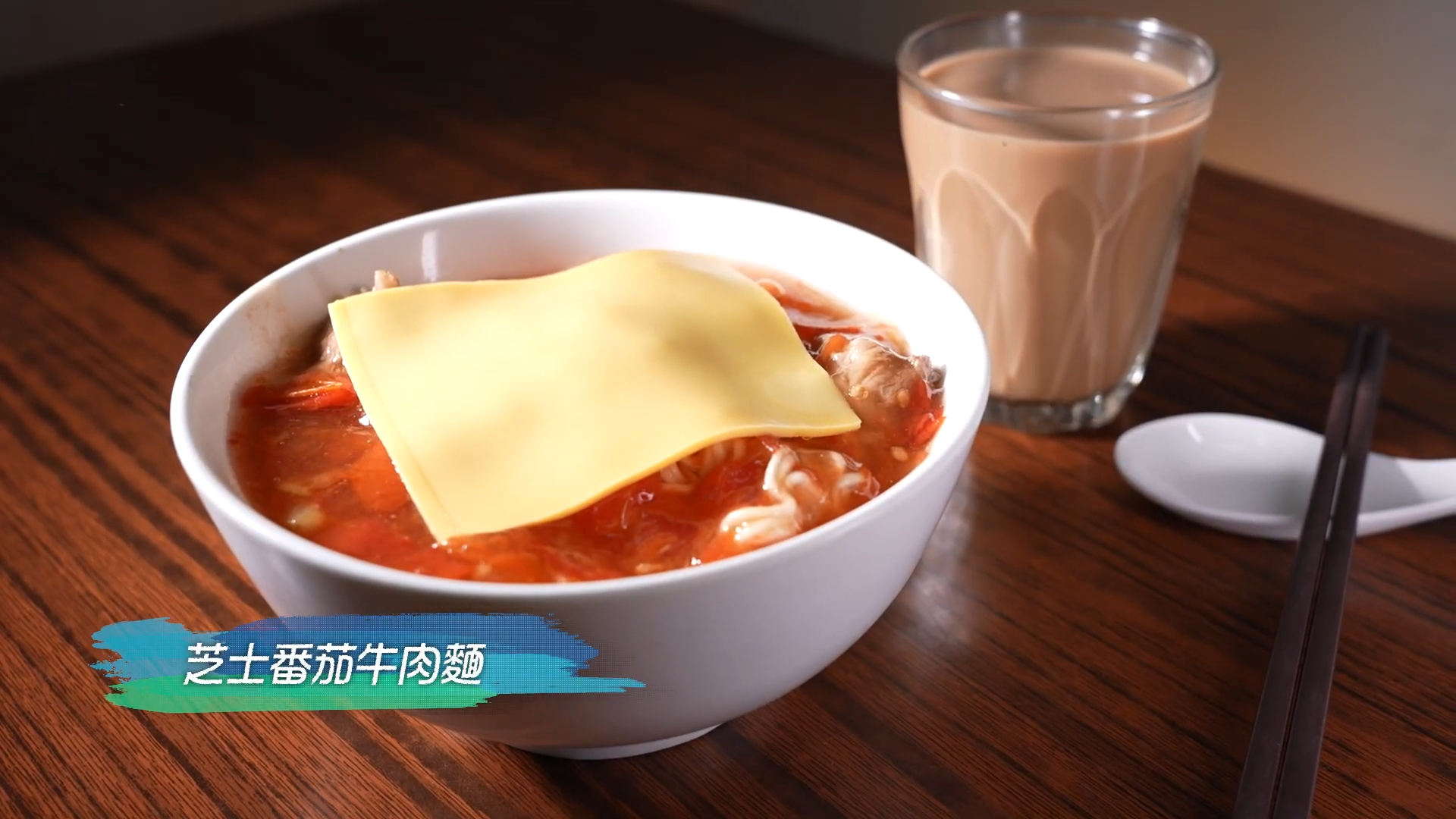 Cecilia指每次到這間茶記都會叫「芝士番茄雞絲撈蛋麵」,而行仔就試食「芝士番茄牛肉麵」。Cecilia分享自己不喜歡把所有餸及湯撈在一起吃,反而喜歡先夾少少麵,再加上湯底、少許芝士和雞肉,這樣可以一匙有齊所有食材,再一啖吃下。二人都大讚湯底有很濃的番茄味,十分美味。![]()