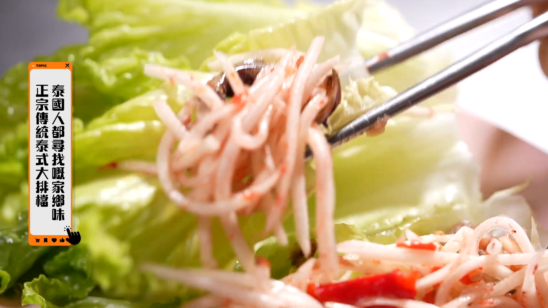 木瓜沙律,配合泰國東北部常用調味料--臭魚醬,Jessica指這個醬聞起來有點鹹魚味。她試食後指:「個醬都幾辣,有啲似泰式辣醬,個辣好有後勁,好香辣,加埋生菜食感覺好清新。」![]()