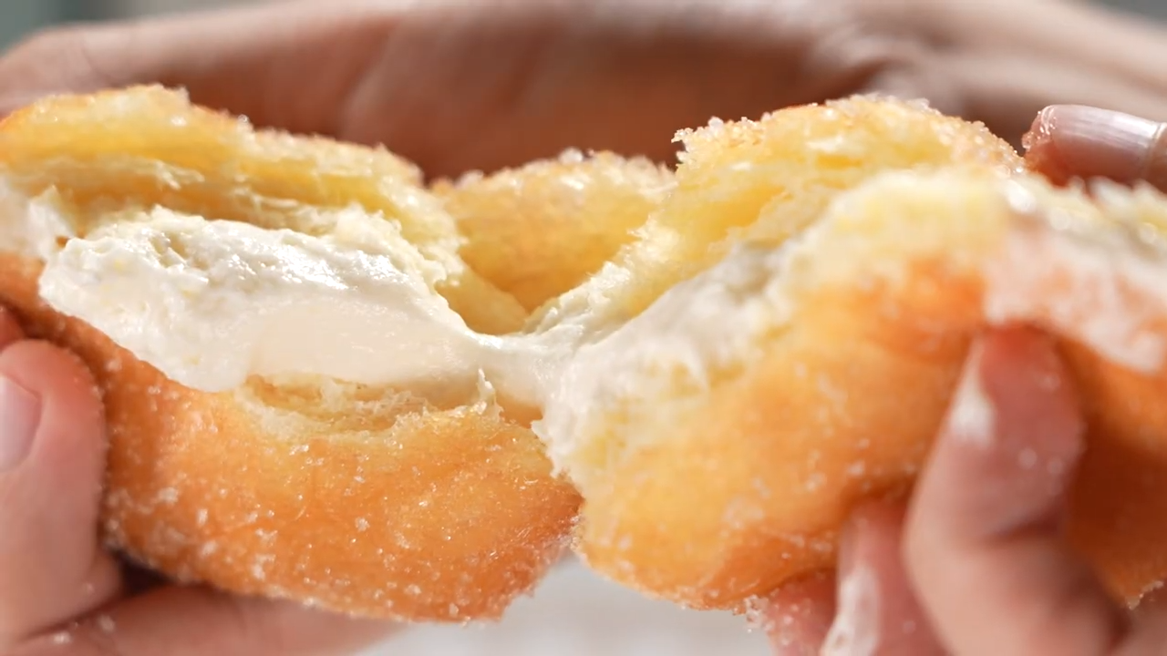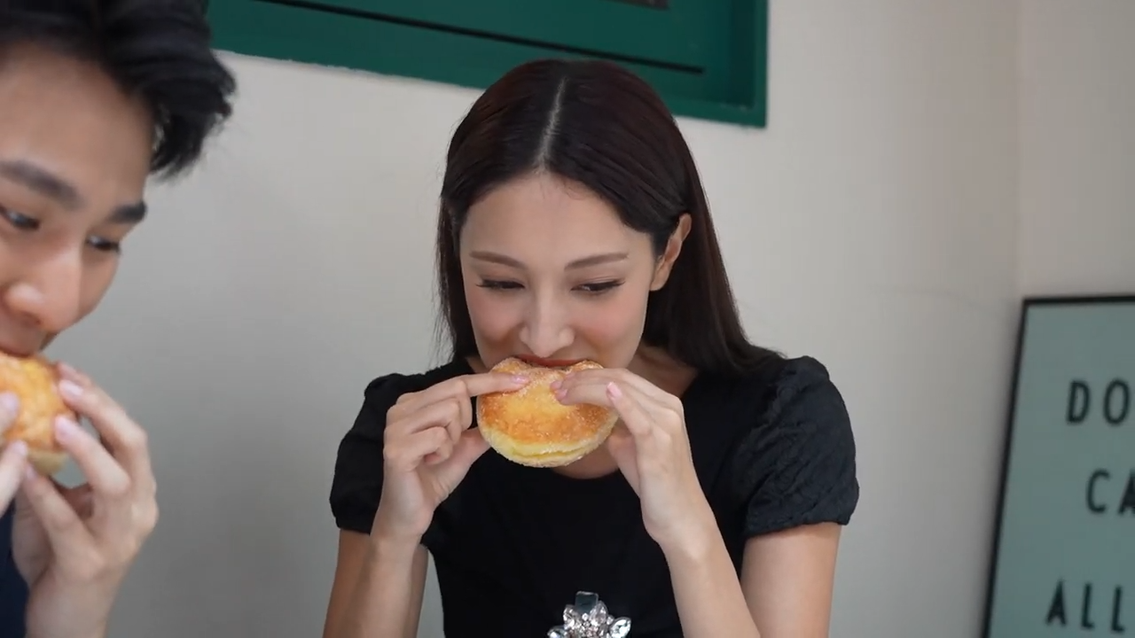 店中有多款口味選擇,爆餡冬甩十分誘人。Grace同行仔挑選了兩款冬甩,第一款煉奶味冬甩,外層香脆,内裡蓬鬆軟綿,注滿厚滑忌廉,煉奶味也甜而不膩,咬開有澎湃爆餡Cream,奶香味突出。而Grace的至愛斑斕椰子味冬甩,斑斕椰子在坊間很少見,還未入口,就已聞到濃郁的椰子清香,鬆軟加上餡料的軟滑,幸福感十足!除了冬甩,這款三層滋味的布朗尼(Slutty Brownies)加入布朗尼、朱古力餅及曲奇夾心,層次豐富。Grace既請行仔食甜品,又貼心買飲品,行仔即刻被Grace俘虜,還大膽詢問對方收自己做契仔,Grace當下被震驚,場面非常搞笑。![]()