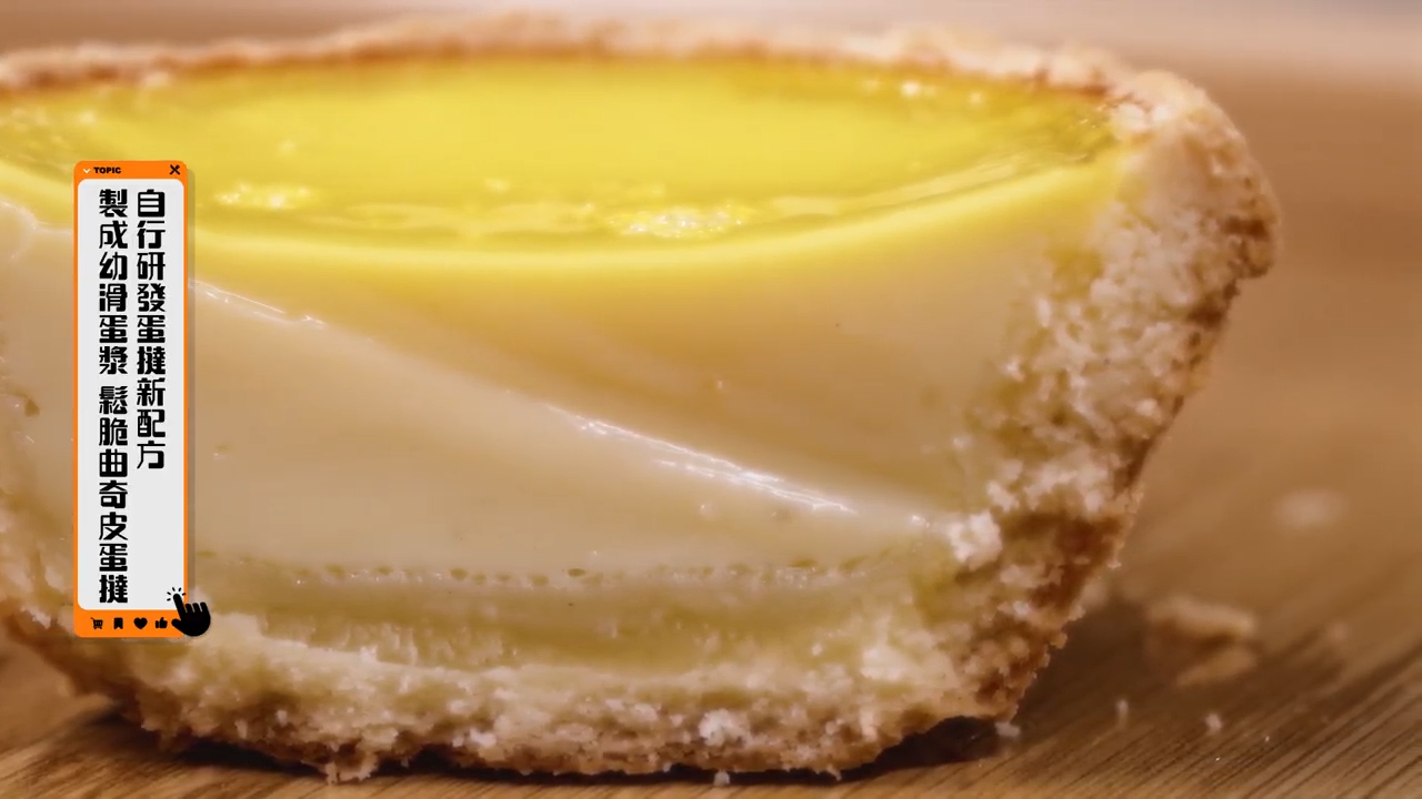 最後鞏姿希Krystl帶大家探訪一間蛋撻店舖。芳叔透露自行研發蛋撻新配方,已超過30次。最後製成幼滑蛋漿,酥脆曲奇皮蛋撻。蛋撻牛油香味及蛋香濃郁,一日售出過千件,深受街坊喜愛。![]()