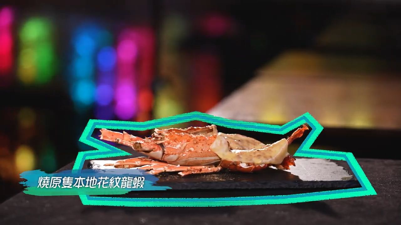 第二站他們來到蘭桂坊一間餐廳,第一道燒原本隻本地花紋龍蝦,濃濃的芝士滲透龍蝦肉裡面,爽口鮮甜。巨型安格斯斧頭扒,則肥瘦相間,油脂豐富,搭配辣椒粉,刺激味蕾。即燒乳豬飯,外脆裡嫩,非常邪惡。