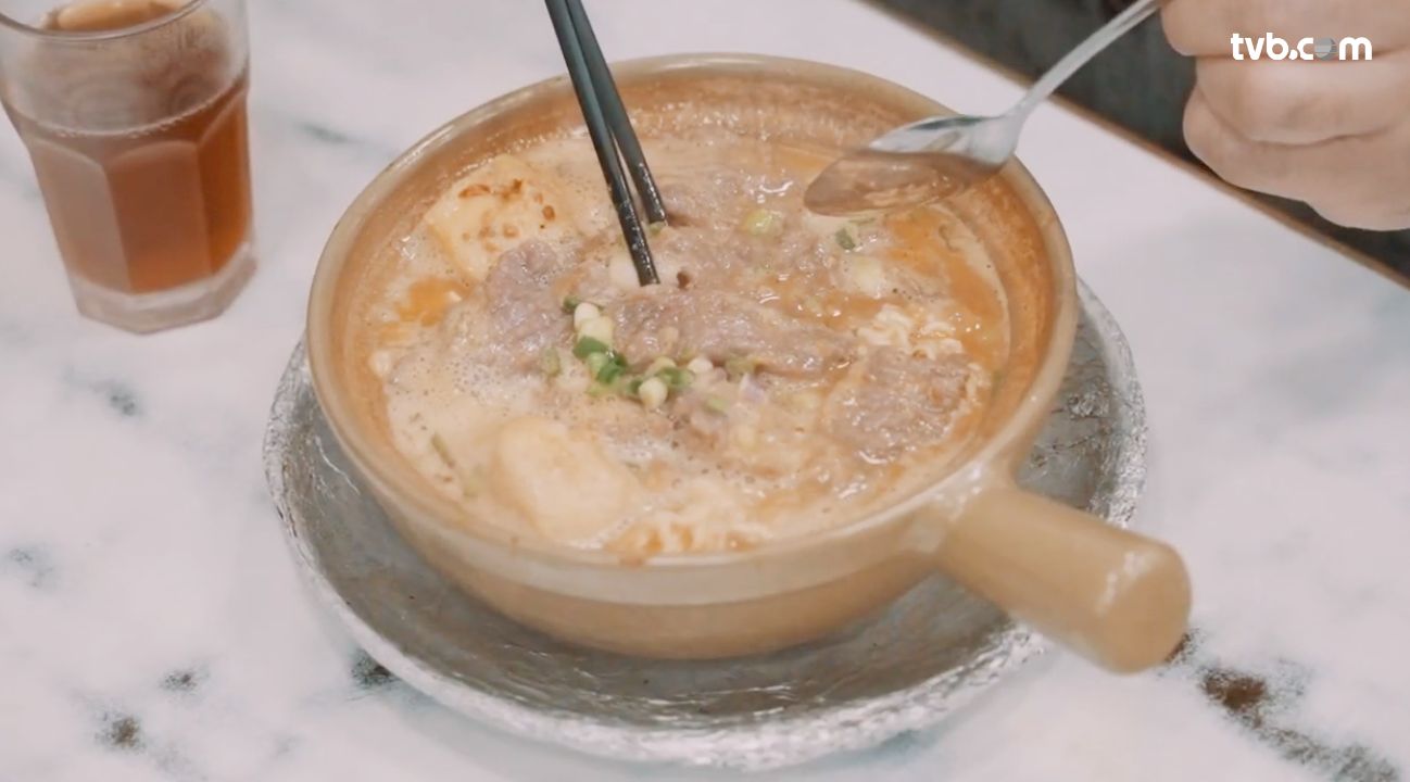 在《老友記》第8集中,主持人楊尚友帶大家去榮記茶餐室吃沙嗲牛肉煲仔麵及金蠔蝦乾煲仔飯!