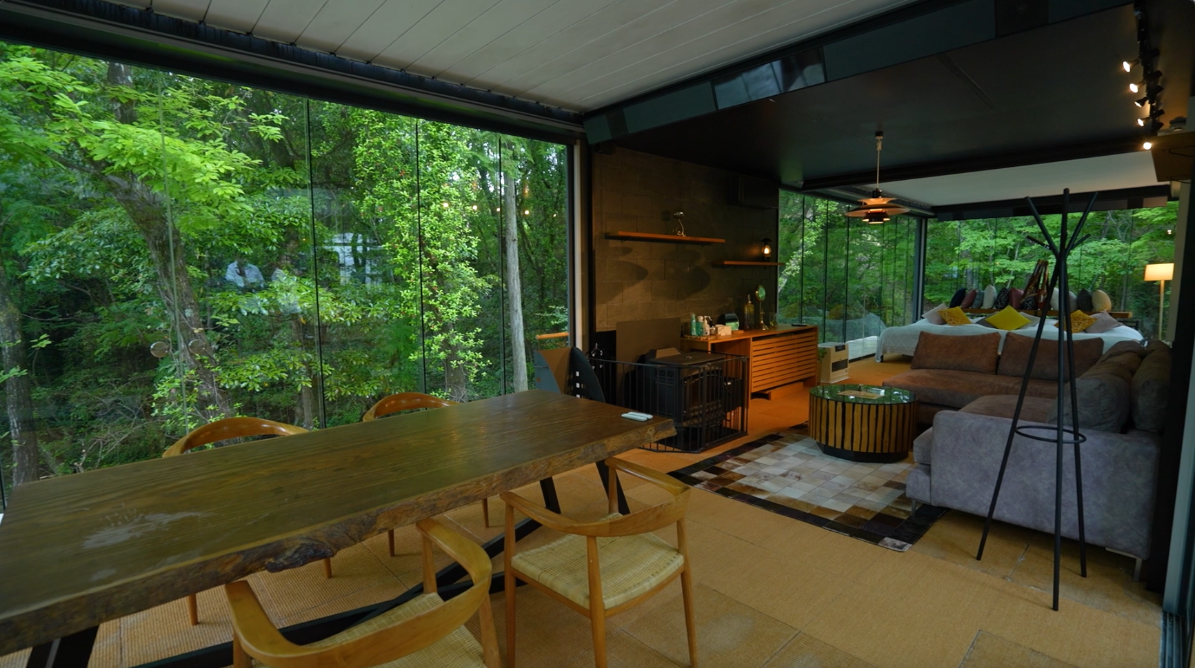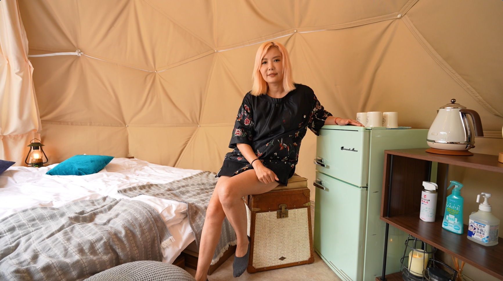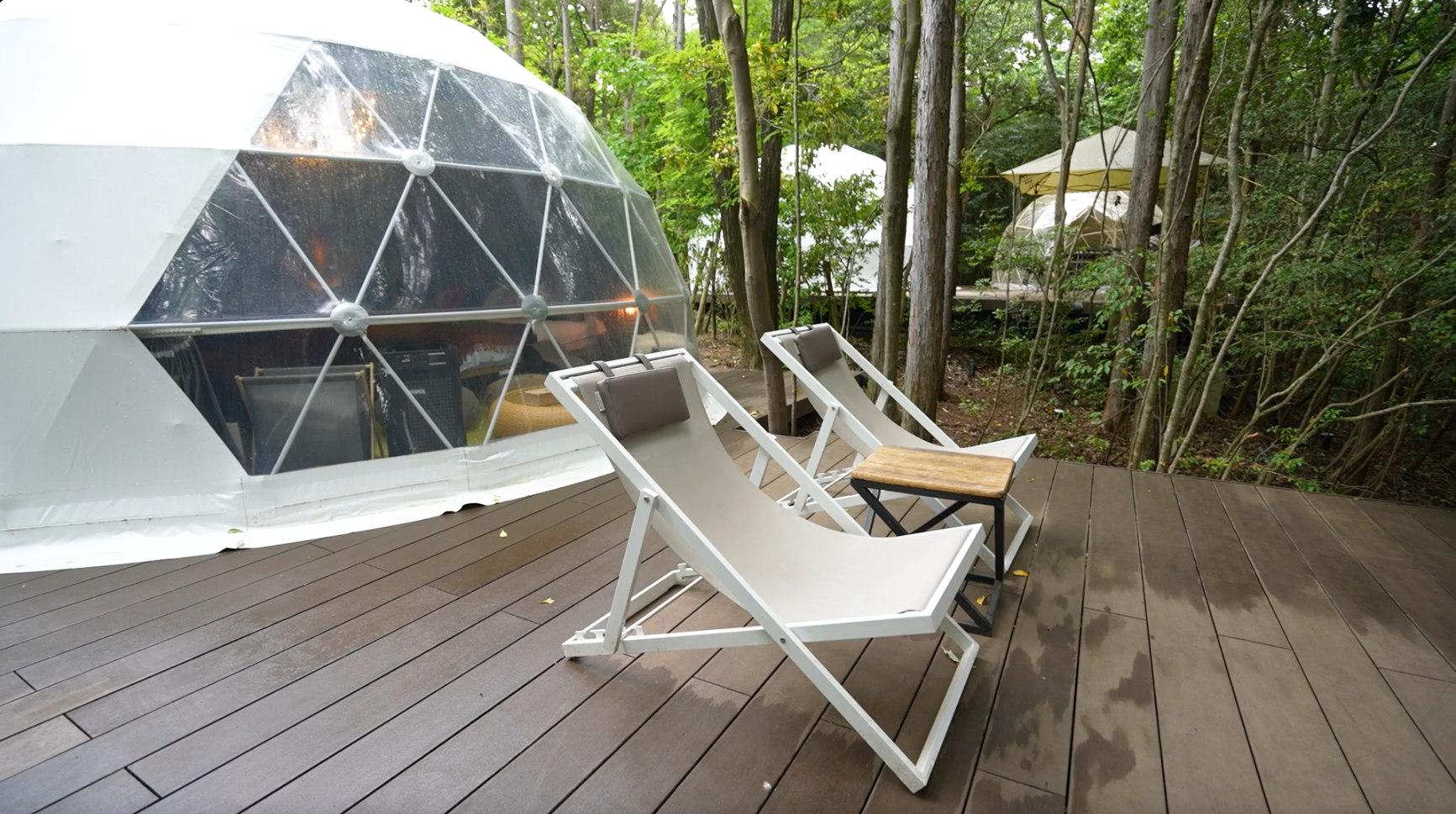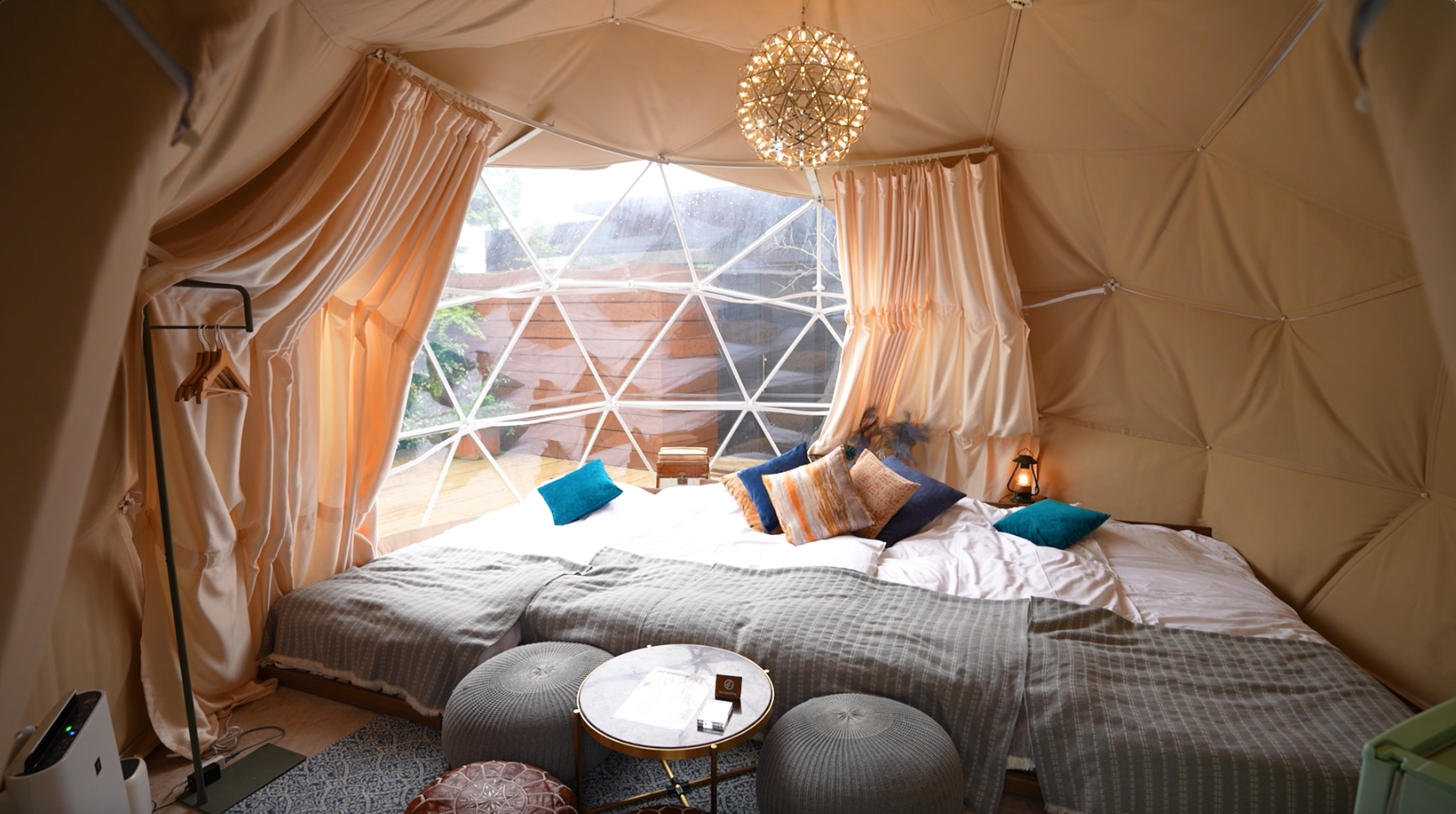 位於由富士的這間溫泉酒店,擁有日本第一棟360度玻璃屋房型,連天花都可以打開,完全打破室內與大自然界限,就算冬天凍也不怕,屋內有暖爐和柴提供給住客。房屋最大容納人數5人,約$1750至$2650一晚,有燒烤區域。而另外這間圓頂帳篷屋型,自帶私人溫泉,$2000/人,大約可住4人。