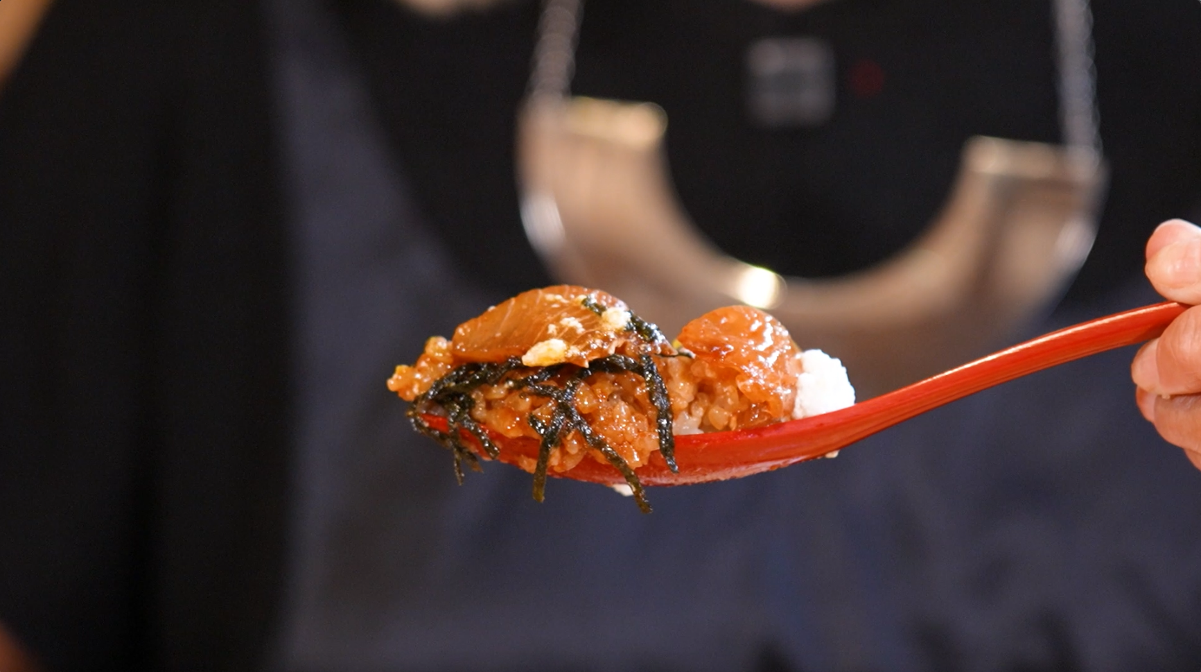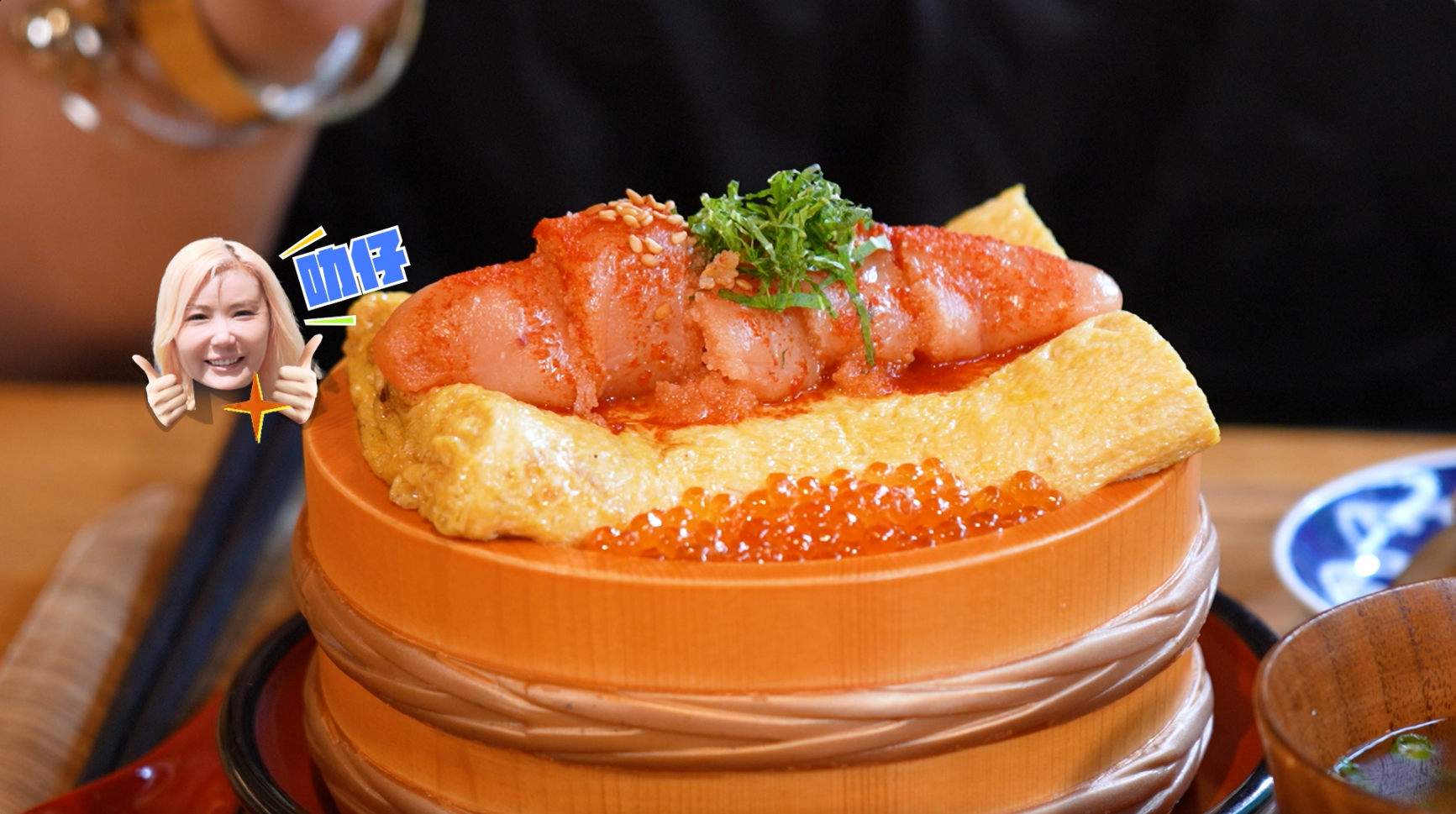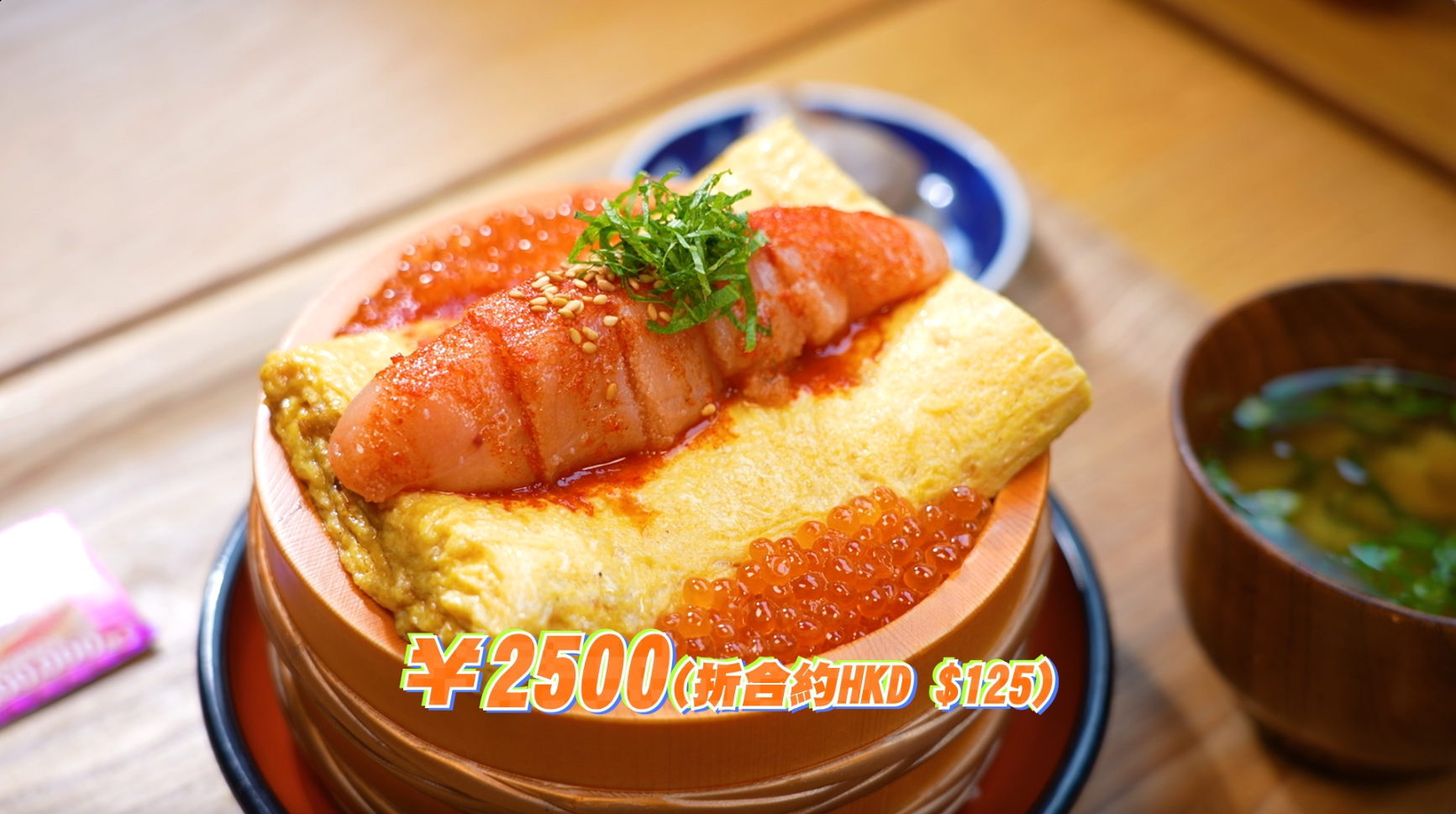 解風福岡第12集!先前集數中,如風已經帶大家瞭解過福岡名物:明太子,今集如風再來到這間位於博多區的人氣明太子木桶丼飯店鋪,繼續品嚐以明太子作主題的不同美食。這份明太子三文魚籽玉子丼有成條明太子同滿碗三文魚籽,配以超香嫩玉子,整體口感稍辣,僅需$125,超抵價!