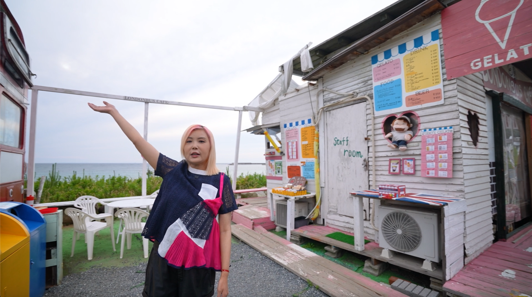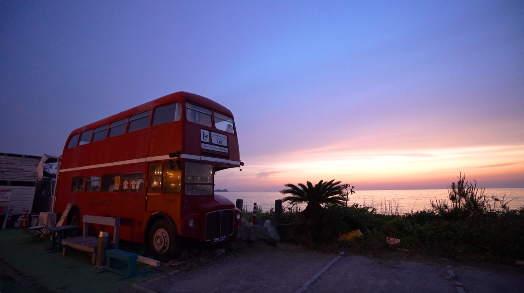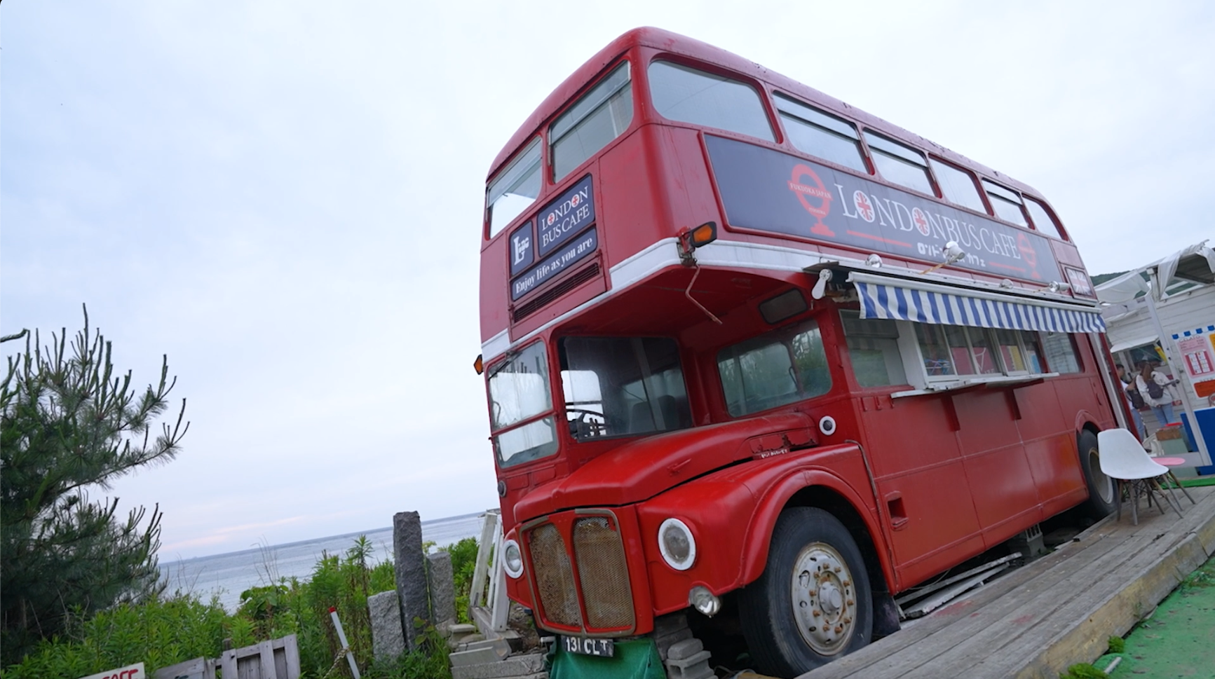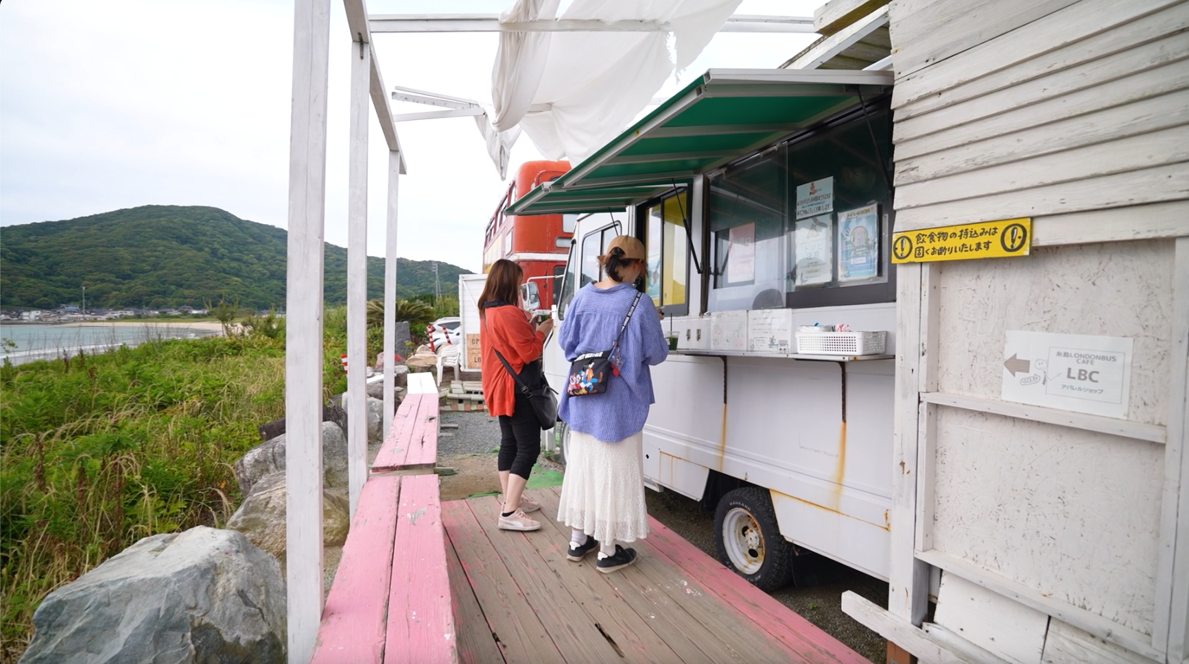 解鎖福岡第六集搜尋海邊特色店鋪!沿著糸島的海岸線,會不時遇到一些意想不到的店鋪,譬如在海邊公路上的這架「英倫巴士Cafe」就相當有特色。