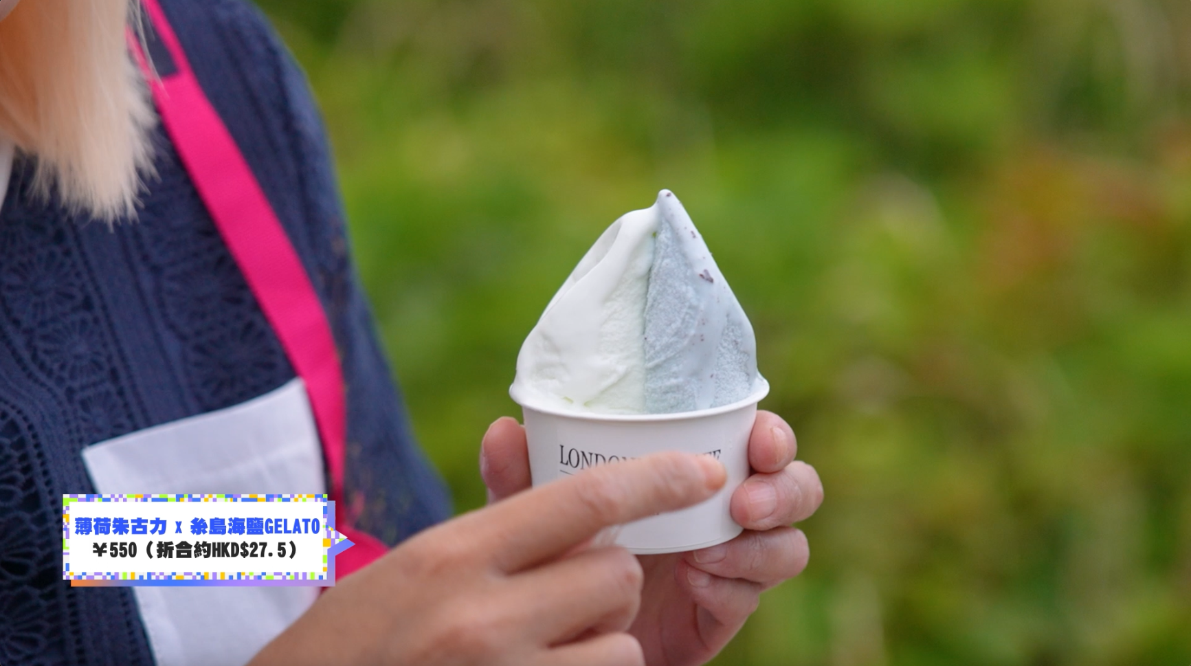 杜如風買的薯片套餐包括凍咖啡以及一包薯片,價格在$37.5左右。這裡的雪糕種類有超過40種那麼多,杜如風嘗試的這款薄荷朱古力X糸島海鹽GELATO,價格在$27.5左右。
