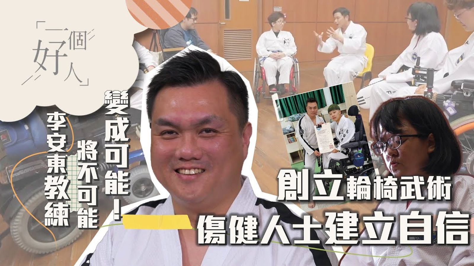 因某次看到聽障人士練武,武術導師李安東決意創立輪椅武術隊,推動傷健共融理念。練武不只鍛練身體,也是心靈的修練,他還成功教出兩位有殘疾的跆拳道黑帶教練。