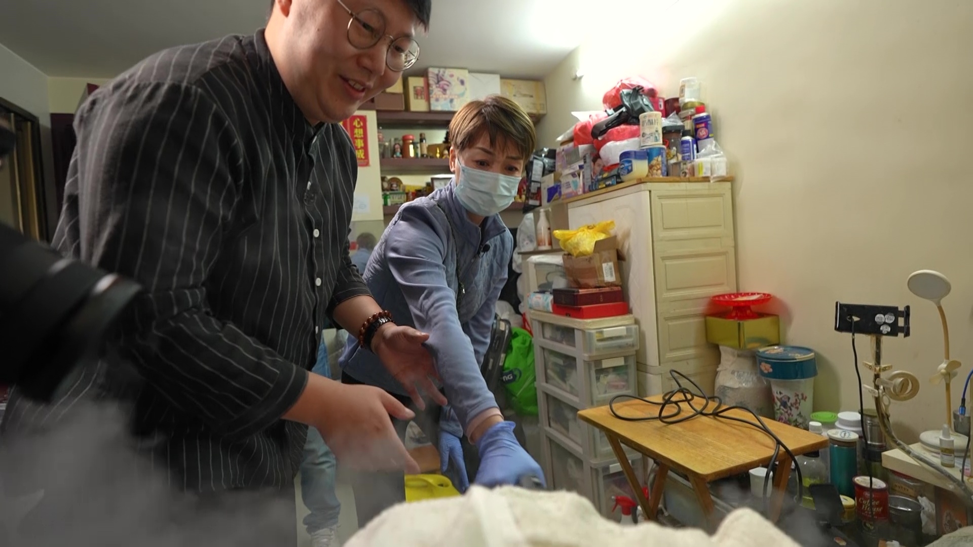 綜藝節目《一個好人》,本周一至三晚10點半翡翠台播映最後三集,最後一周換上江美儀擔任主持,並繼續由「音樂情人」鄭子誠作聲音導航。昨晚(1日)一集美儀分別拜訪了義務幫基層滅蝨的陳家駱(阿臣)、義補計劃創辦人梁啟業( O仔)和義務照顧獨居老人的徐玉英(Joyce)。出身破碎家庭、眼部有殘疾的阿臣曾經歷床蝨煎熬,後來成立了滅蟲公司並決意義務幫基層滅蝨,阿臣說:「個人力量好細,做得一單得一單,幫到一個人就一個人,希望能夠及時將關懷帶到出去。」戴齊口罩和手套的美儀,跟隨阿臣到一個單位滅蝨,該單位布滿雜物、床蝨無處不在,美儀膽粗粗拿着蒸氣機四處噴蒸氣滅蝨,但當見到床蝨隱藏在各種窿窿隙隙位置時,還是忍不住嚇到大嗌,美儀事後坦言:「一定要唔怕污糟,如果唔係點清潔,但我回心諗,如果我唔幫佢清潔,咁佢咪一直畀啲蝨惹佢?係恐怖、核突㗎,但做得就做囉。」![]()