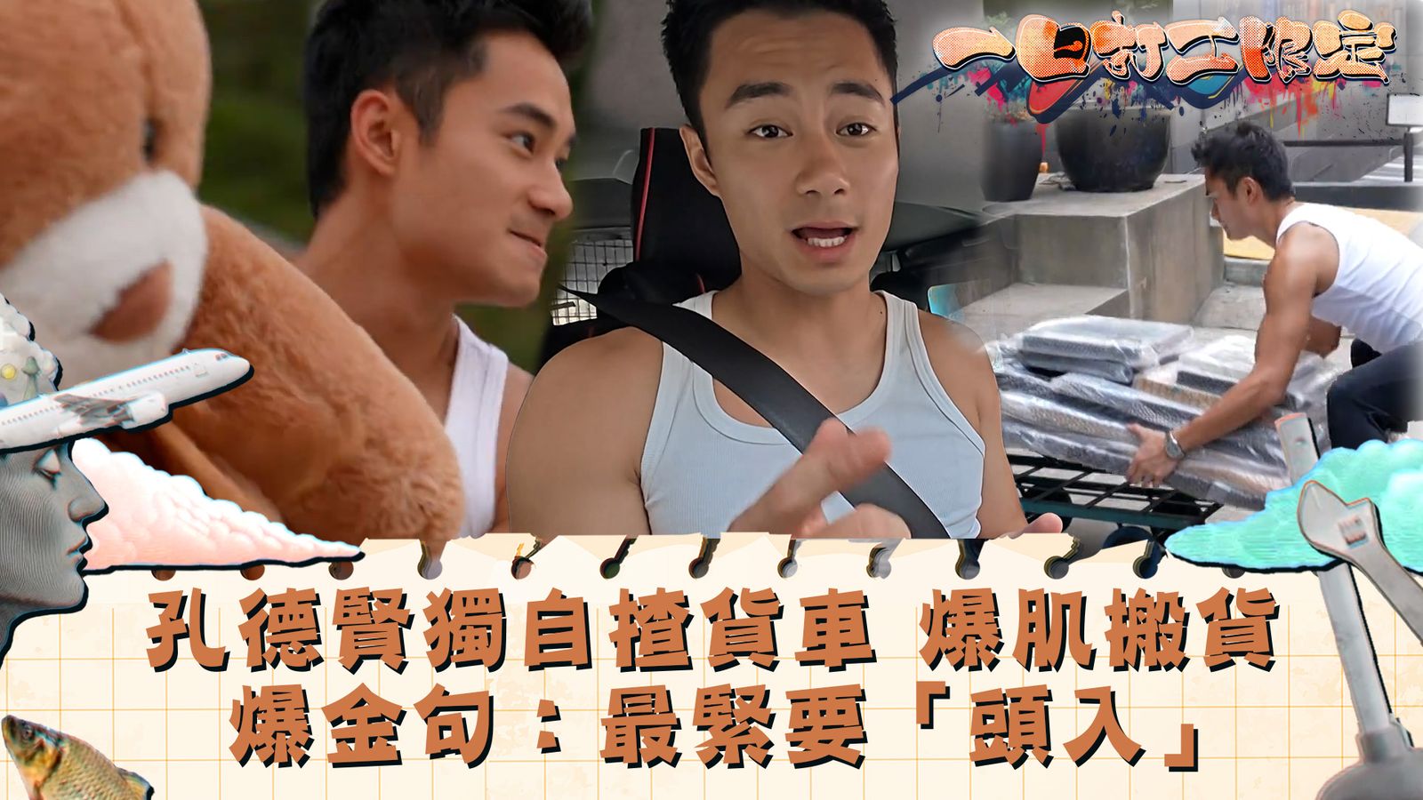 一日打工限定|孔德賢獨自揸貨車 爆肌搬貨 爆金句:最緊要「頭入」點讚分享撰文:PA_FAFA 發佈日期:2025-05-30 15:0510秒後自動播放下一則影片重播當前影片【一日打工限定】孔德賢獨自揸貨車 爆肌搬貨 爆金句:最緊要「頭入」《一日打工限定》孔德賢駕輕型客貨車獨自「出車」接單,這次是為村屋客人搬運貨物,但推送時有點驚險。 在車上簡單開餐後,德賢接了一張運送油畫的易損物品任務,德賢竟差點令貨物受損?終極訂單是載送派對物品,途中他還擔心蛋糕會受熱溶化。一日打工限定|星期一至五 晚上 10:30|翡翠台#一日打工限定#孔德賢