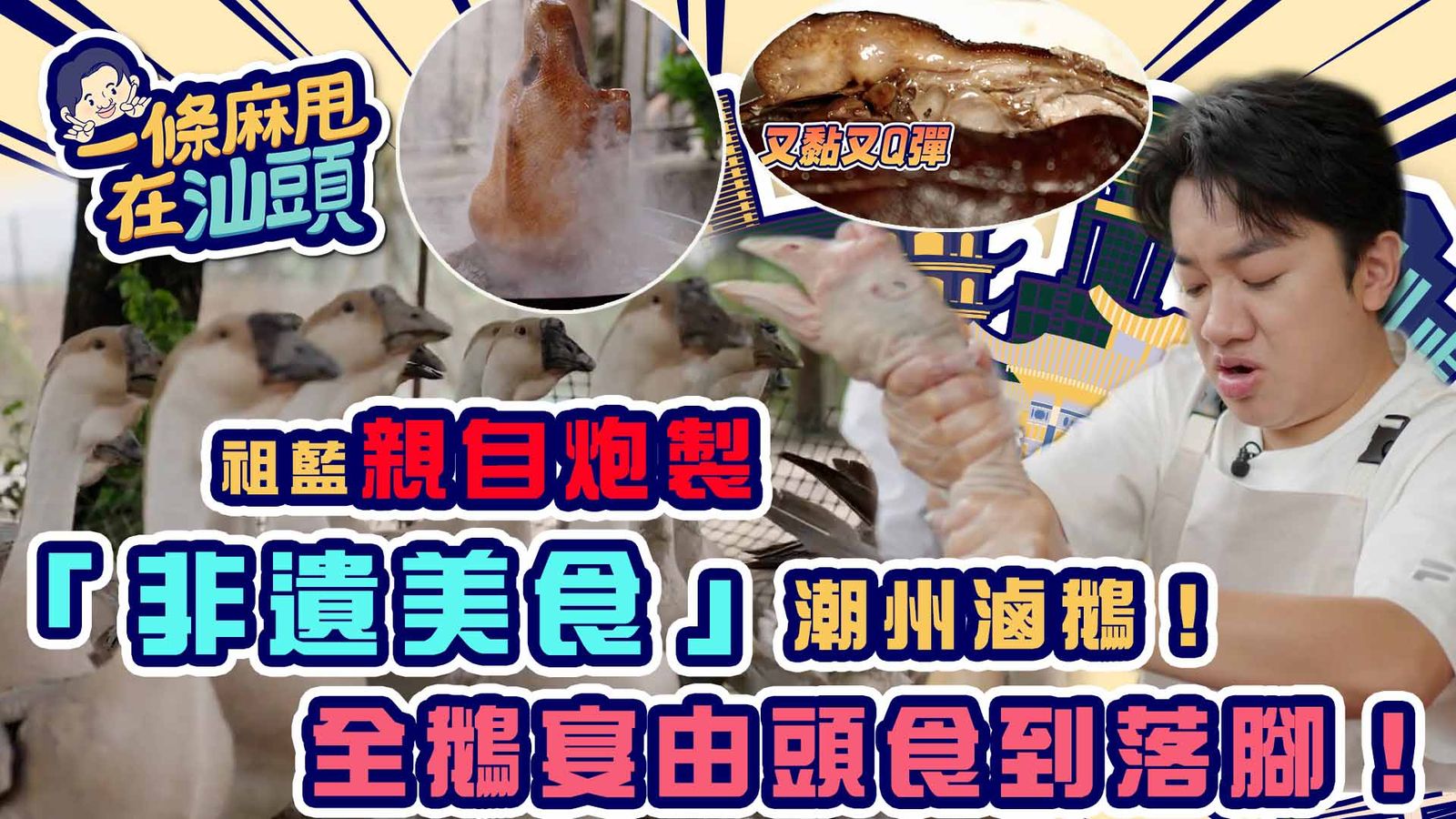 一條麻甩在汕頭|祖藍親自炮製「非遺美食」潮州滷鵝!全鵝宴由頭食到落腳!|汕頭 旅行 打卡 攻略|王祖點讚分享撰文:吉列海膽 發佈日期:2024-11-13 15:01【一條麻甩在汕頭】祖藍親自炮製「非遺美食」潮州滷鵝!全鵝宴由頭食到落腳!《一條麻甩在汕頭》潮州滷水鵝成為咗汕頭市嘅非物質文化遺產,一場嚟到當然要食最正宗嘅滷鵝啦!呢度嘅老闆仲親自落場教祖藍做法,仲食咗一餐全鵝宴!主持: 王祖藍一條麻甩在汕頭|星期一至五 晚上 10:30|翡翠台#一條麻甩在汕頭#王祖藍