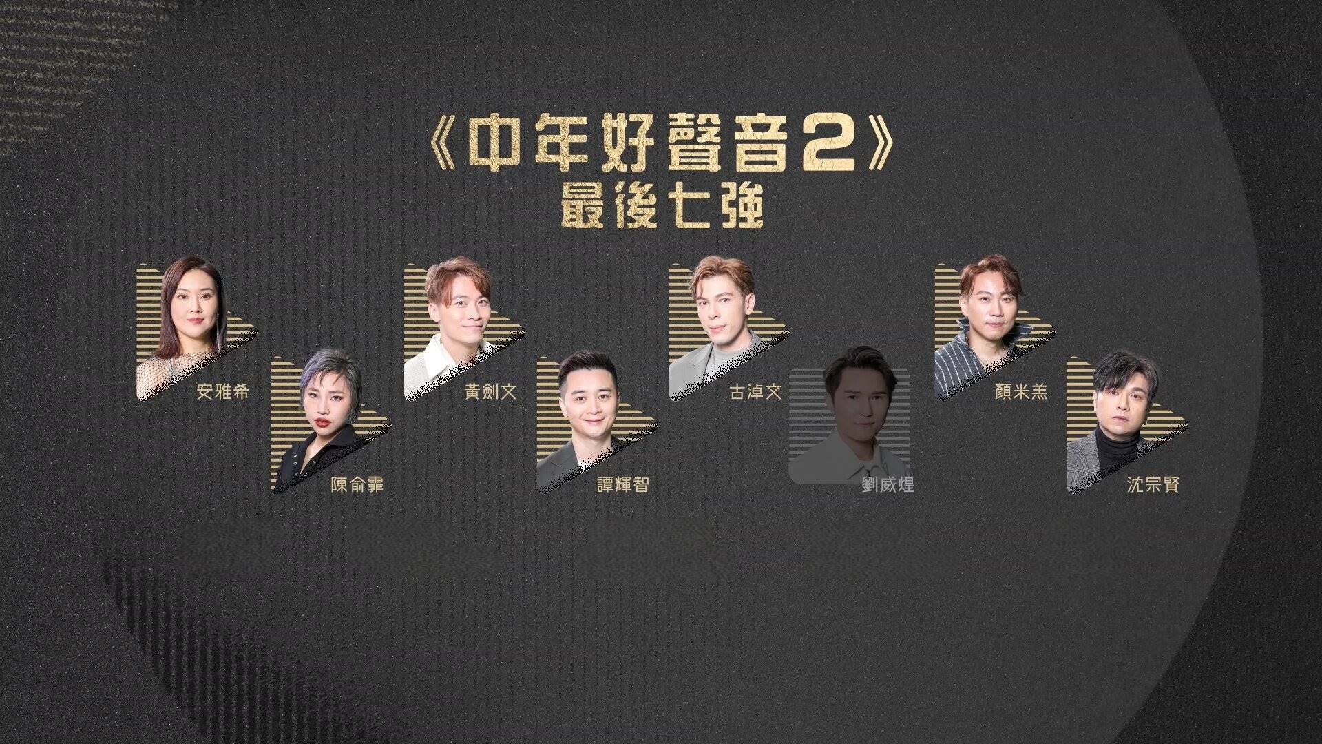 《中年好聲音2》7強名單最終如下(排名不分先後):安雅希、陳俞霏、黃劍文、譚輝智、古淖文、顏米羔、沈宗賢