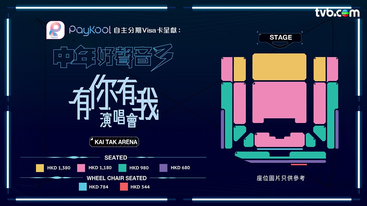 中年好聲音3演唱會門票票價分別為 $1380、$1180、$980和$680;輪椅座位票價分別為 $784及 $544。
