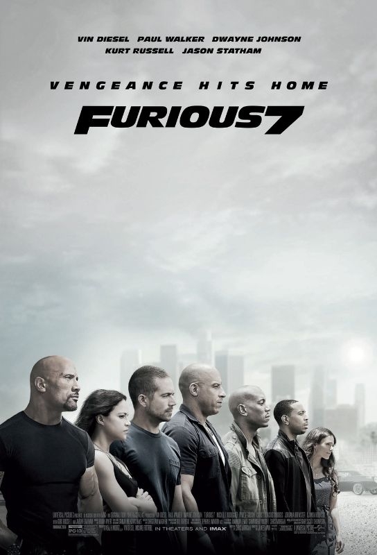 Continuing the global exploits in the franchise built on speed, Vin Diesel leads the returning cast of "Furious 7." After defeating Owen Shaw and his crew, Dominic Toretto (Vin Diesel), Brian O'Conner (Paul Walker) and the rest of the crew return to the United States to finally live a seemingly normal life... or so they thought. Little did they know that Owen’s older brother, Deckard Shaw (Jason Statham), is out for revenge for the death of his brother, putting Dominic and the entire crew in danger, once again. Meanwhile, the crew sets out to find the man who killed Han…before he finds them first. James Wan directs this chapter of the hugely successful series, and Neal H. Moritz and Vin Diesel return as producers.