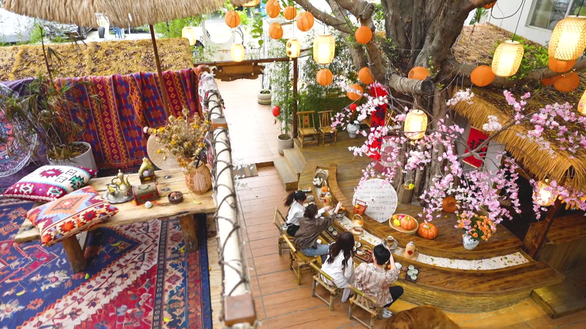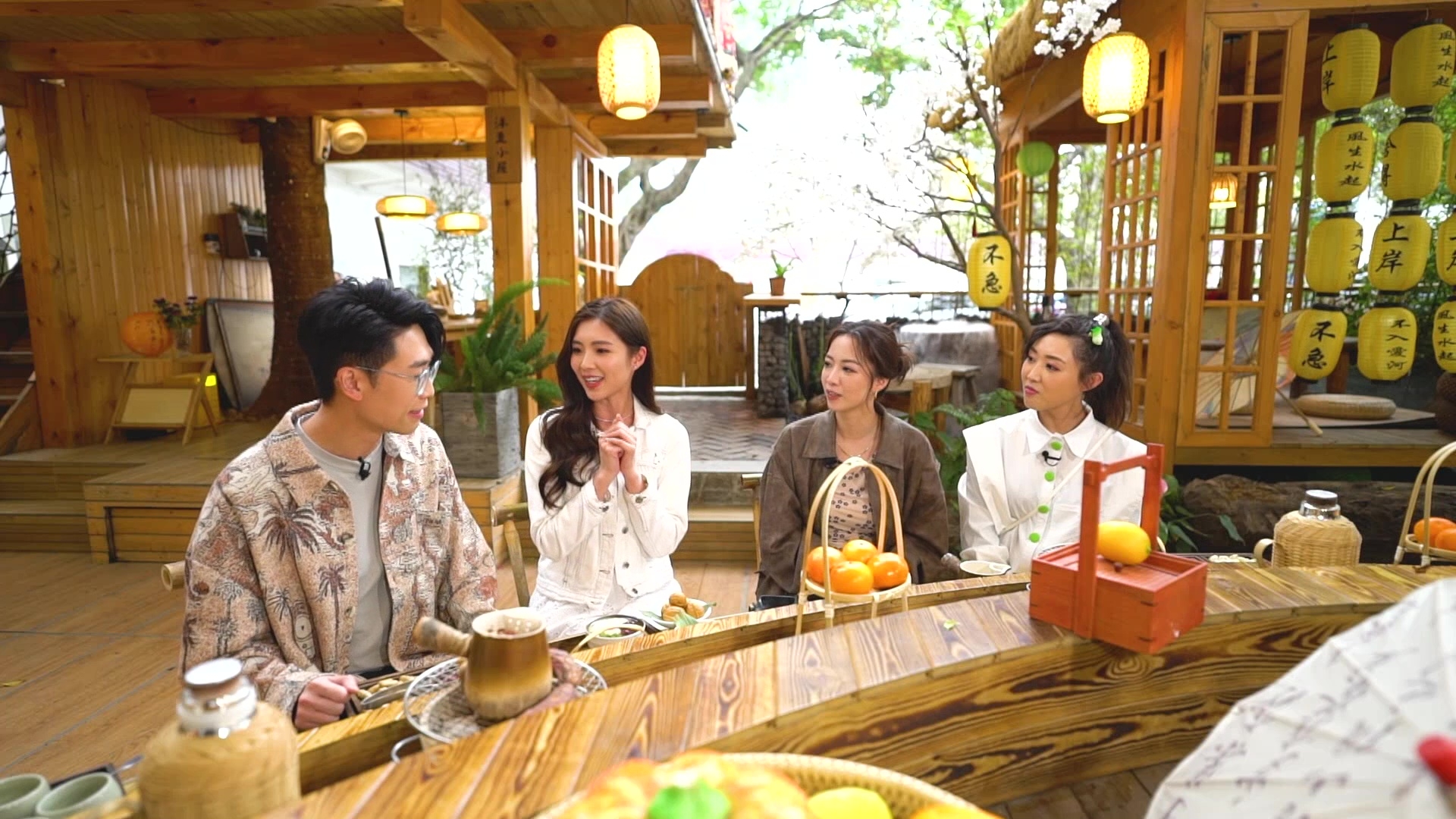 三位女主持還到了人氣網紅炭燒海鮮店觀摩,大歎啖啖蟹膏的惹味「火山辣蟹」、超大件酥炸生蠔、手臂般長的炭燒瀨尿蝦、串燒等,其中榴槤口味的炭燒雞翼,令林秀怡品嚐後大讚:「成件事好夾!」喜歡榴槤的朋友千萬別錯過烤貓山王榴槤甜品,外脆內裡超creamy,必定一試難忘。想約三五知己歎茶聊天亦有café以外的選擇,圍爐煮茶成為內地網紅近年打卡新風潮!原為攝影師兼園藝高手的老闆娘,在寶安區科技園親手打造出古風小庭園讓知音人邊歎茶邊享受清靜安寧,人均消費滿198元還可免費任穿古裝打卡,讓你和閨密體驗「穿越」滋味。![]()