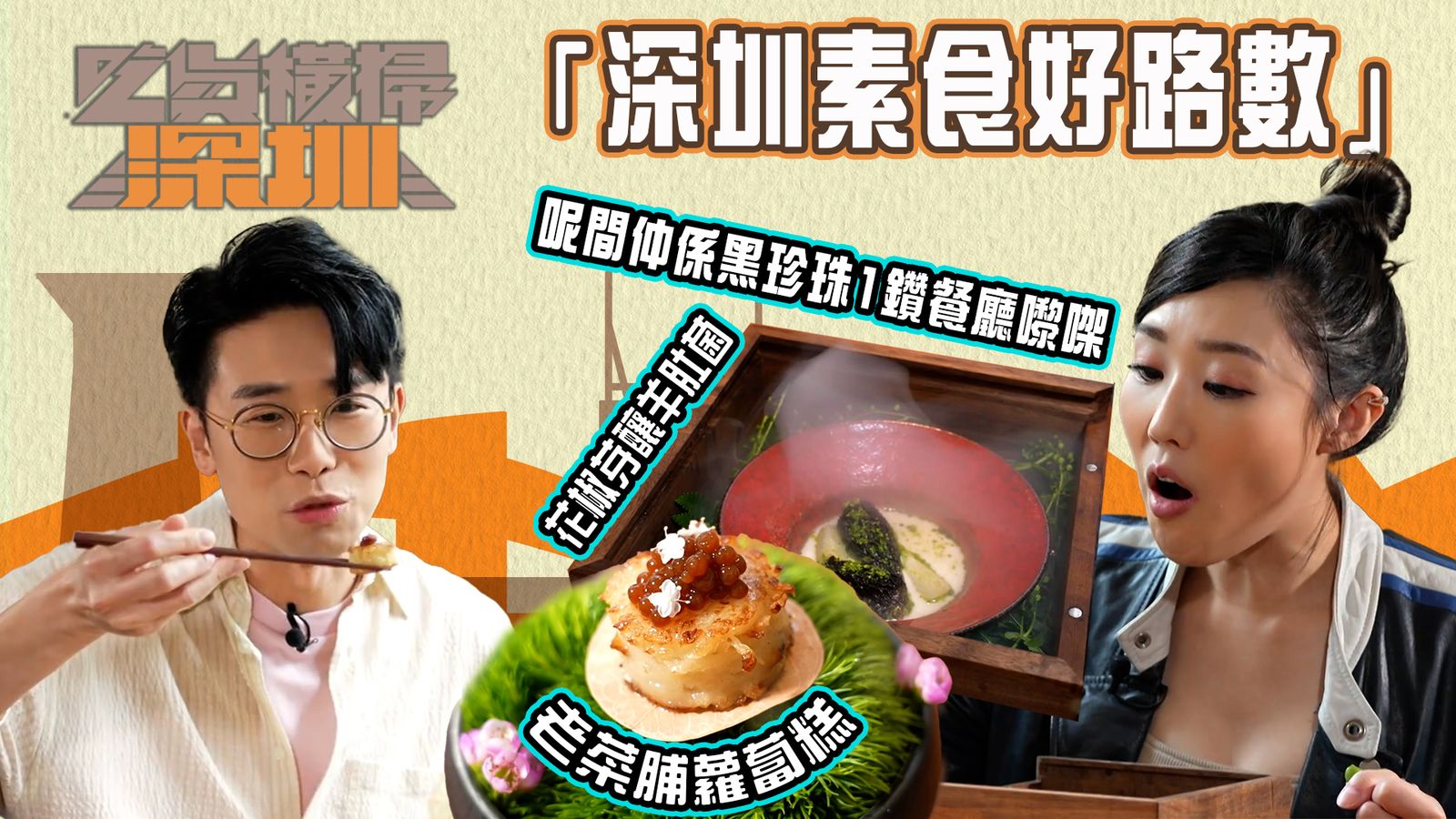 吃貨橫掃深圳|深圳素食好路數點讚分享撰文:PA_FAFA 發佈日期:2024-04-16 16:00 更新日期:2024-04-19 08:01吃貨橫掃深圳|深圳素食好路數《吃貨橫掃深圳》第5集 享用星級素菜,除用上多款矜貴菇菌外,菜式的精緻造型亦令人不自覺要相機食先!品嚐香滑「薑撞奶」,凱晴、慧中還親手試做。🌟天嶼水.茶蔬 地址 : 深圳福田區福華路OneAvenue卓悅中心西區L5-506 🌟佛山黃師傅甜品屋地址 : 深圳南山區蛇口漁村路73號之一吃貨橫掃深圳|星期一至三 晚上 10:30|翡翠台#吃貨橫掃深圳#素食