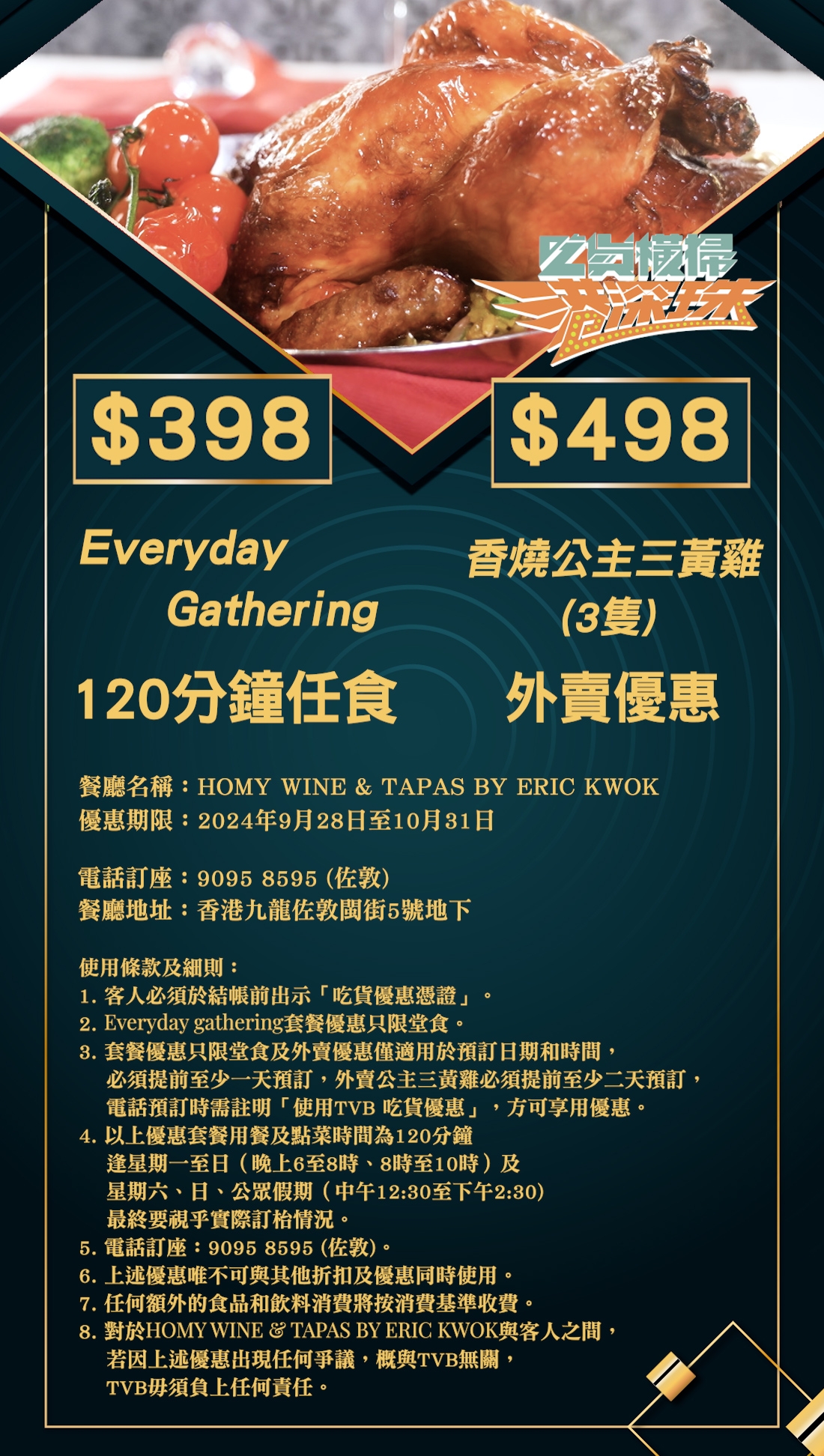 7. 對於HOMY WINE & TAPAS BY ERIC KWOK與客人之間,若因上述優惠出現任何爭議,概與TVB無關,TVB毋須負上任何責任。