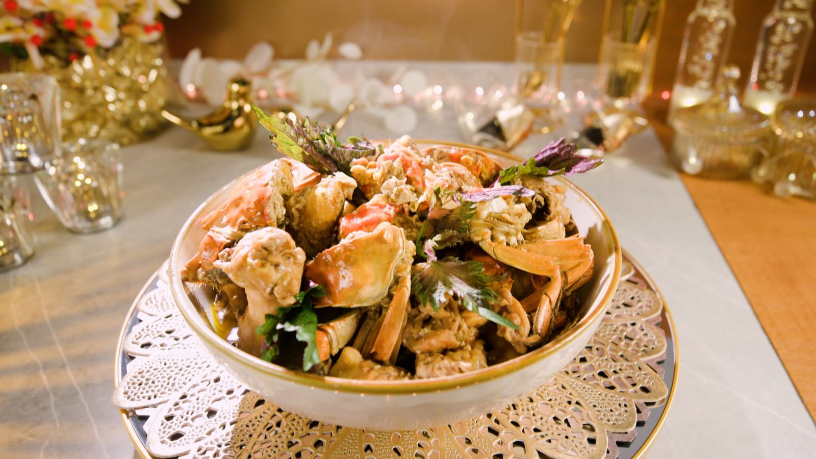 8)再下大閘蟹 , 加花雕酒、調味料及紫蘇葉, 蓋上蓋煮8至10分鐘