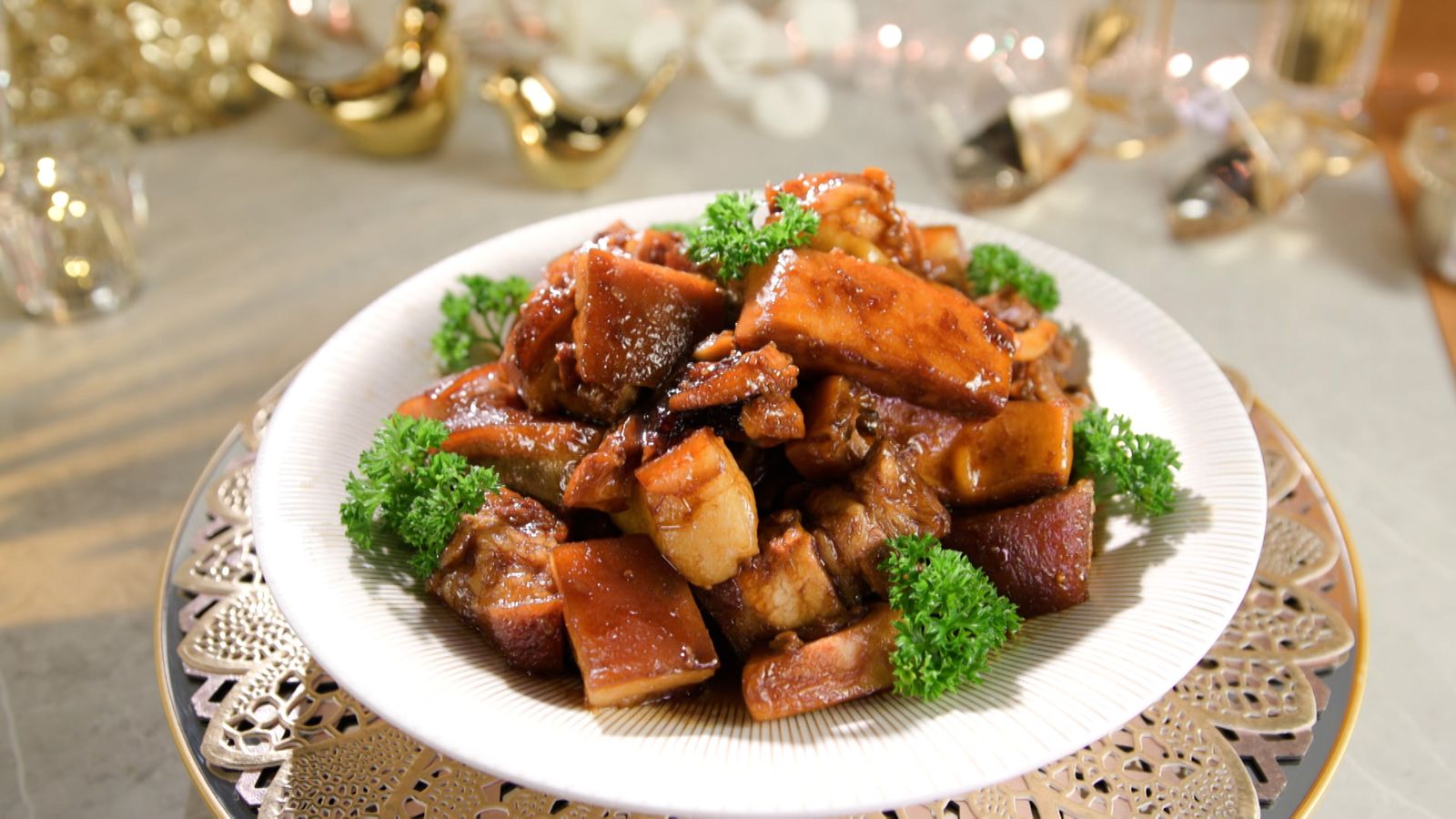12) 之後拿出將腩肉及墨魚切小件 , 放回鑊中煮至收汁即成