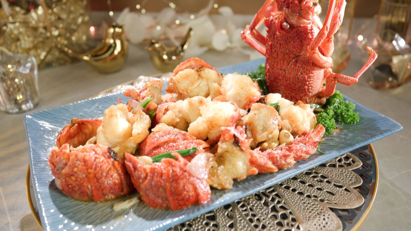 6) 下調味汁料與龍蝦炒勻, 最後下青蔥, 上碟, 龍蝦頭及尾作伴碟即成
