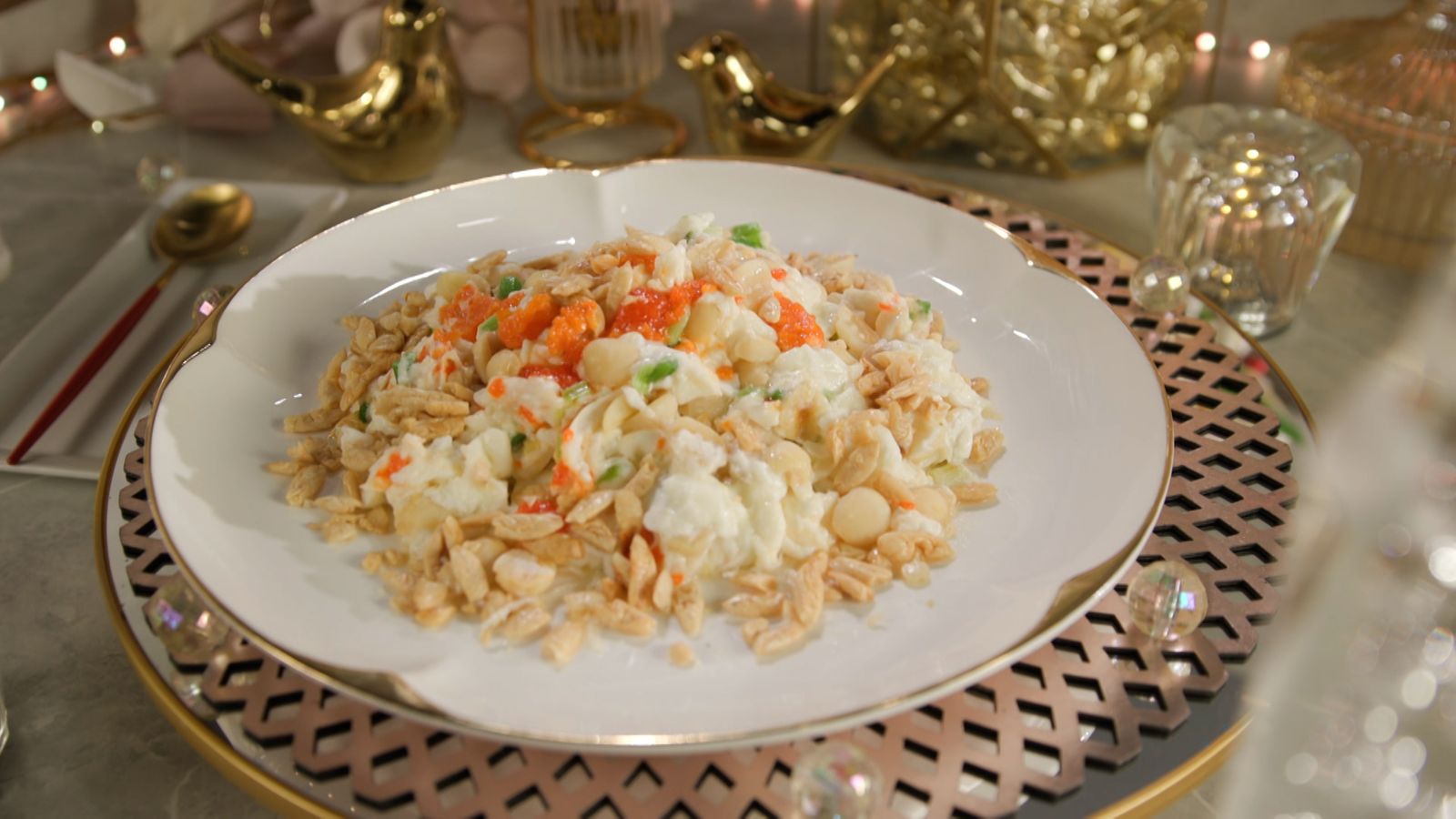10) 炸米粉鋪碟底, 上碟後再放上欖仁作點綴