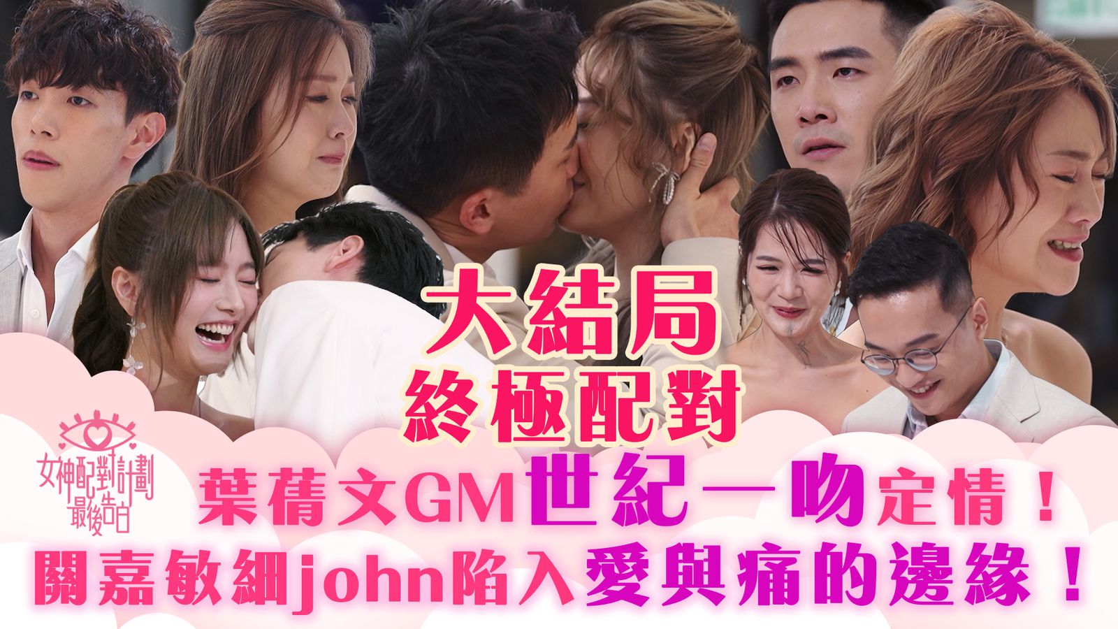 女神配對計劃|大結局終極配對!葉蒨文GM世紀一吻定情!關嘉敏細john陷入愛與痛的邊緣!1分享撰文:Him 發佈日期:2025-09-14 13:13 更新日期:2025-09-14 13:17【女神配對計劃】大結局終極配對!葉蒨文GM世紀一吻定情!關嘉敏細john陷入愛與痛的邊緣!《女神配對計劃》終於迎來大結局!五位女神著上婚紗現身教堂,等待佢哋嘅係咁多位著上白色西裝嘅新郎哥。到底有情人係咪終成眷屬呢?葉蒨文同GM曾展望獻上世紀一吻!關嘉敏細john徘徊喺「愛與痛的邊緣」?#女神配對計劃