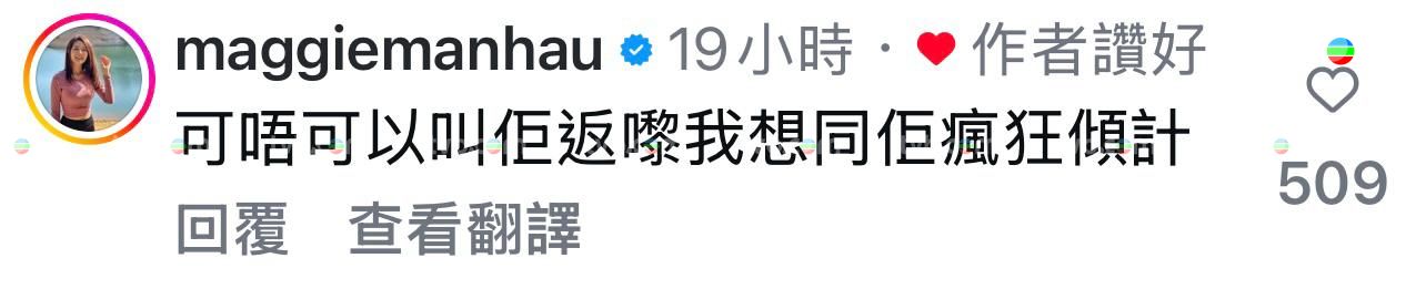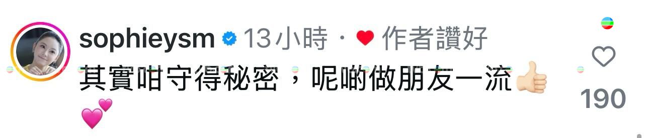 至於阿Bob IG,亦吸引了大批藝人好友湧入留言,就連蔡卓妍及蔣家旻亦有留意節目,阿SA:「笑死我」、蔣家旻:「尋晚笑到我哩」、蕭正楠:「東莞廣州,結婚生BB一定係混血兒」;就連節目中其中兩位女神,亦忍不住留言湊熱鬧,並似乎對維燁情有獨鍾,葉蒨文:「其實咁守得秘密,呢啲做朋友一流」、梁敏巧:「可唔可以叫佢返嚟,我想同佢瘋狂傾偈」,當中梁敏巧的留言,已吸獲510 Likes,維燁受歡迎程度可見一班。