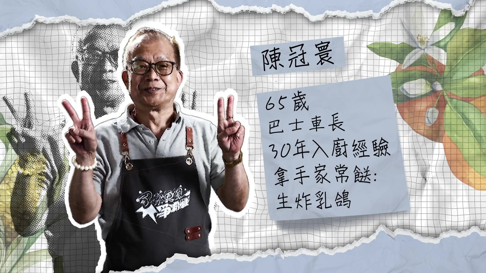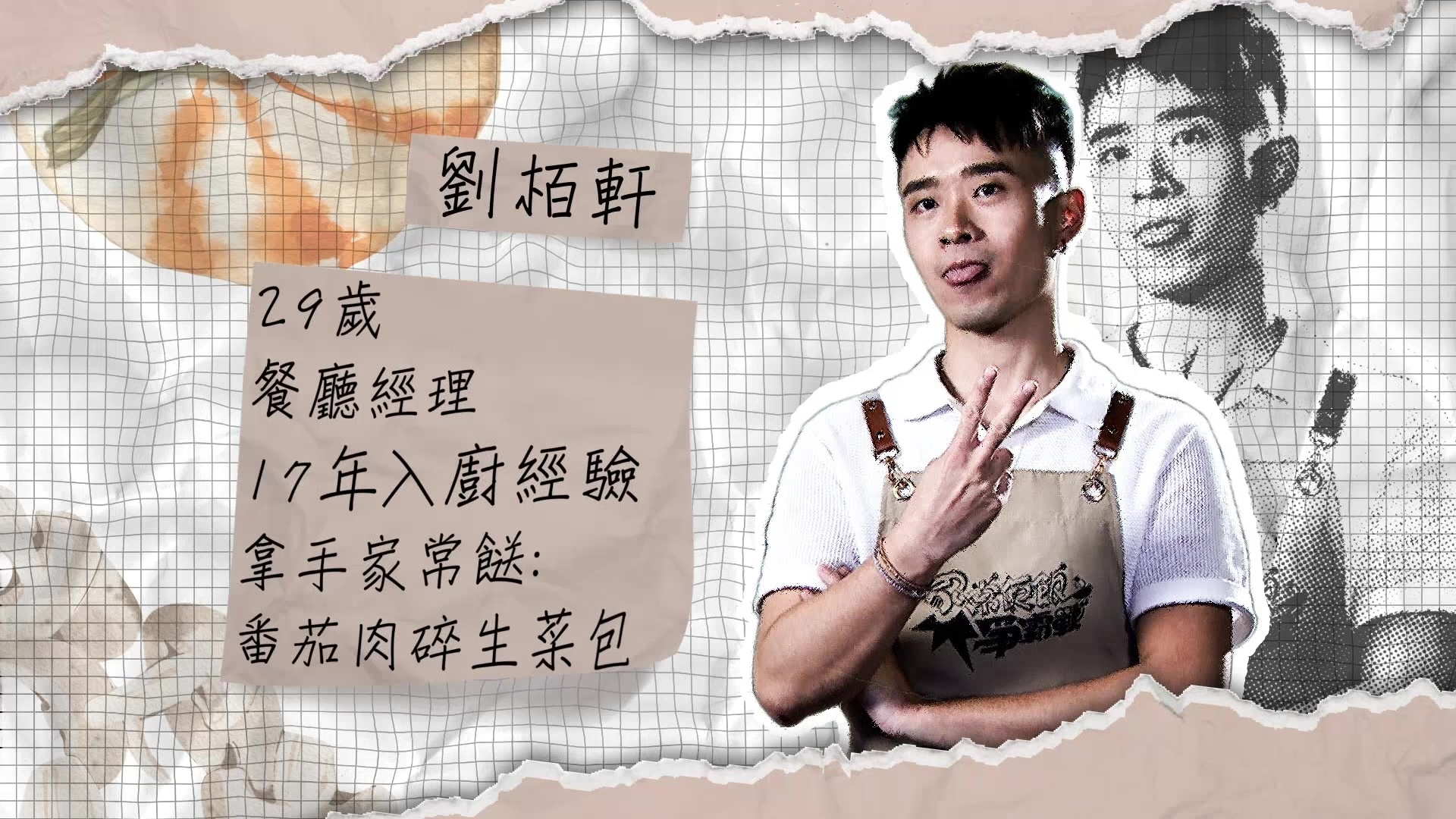 首集指定食材是魚,29歲劉栢軒以脆糯鮭魚馬鈴薯餅,對決65歲陳冠寰(Wan哥)的檸汁酥炸多春魚,並順道分享入廚因由。栢軒指由於父母從他小時候已出國公幹,故與弟弟幾乎每天都吃外賣;為了擺脫「外賣人生」,栢軒12歲左右便開始上網睇片學煮,至今已累積17年下廚經驗。Wan哥則自誇可一分鐘刨十個蘿蔔,並自封「無敵摩打手」!自選菜式方面,Wan哥以咖哩薯仔雞翼vs栢軒的手工蛋餃蔬菜湯,Wan哥透露曾在社區中心煮過 20至30人份量的咖哩薯仔雞翼,並笑言大獲好評。至於栢軒親自製作蛋餃時,則獲三姐搞笑發問:「會唔會盞搞」,場面開心。