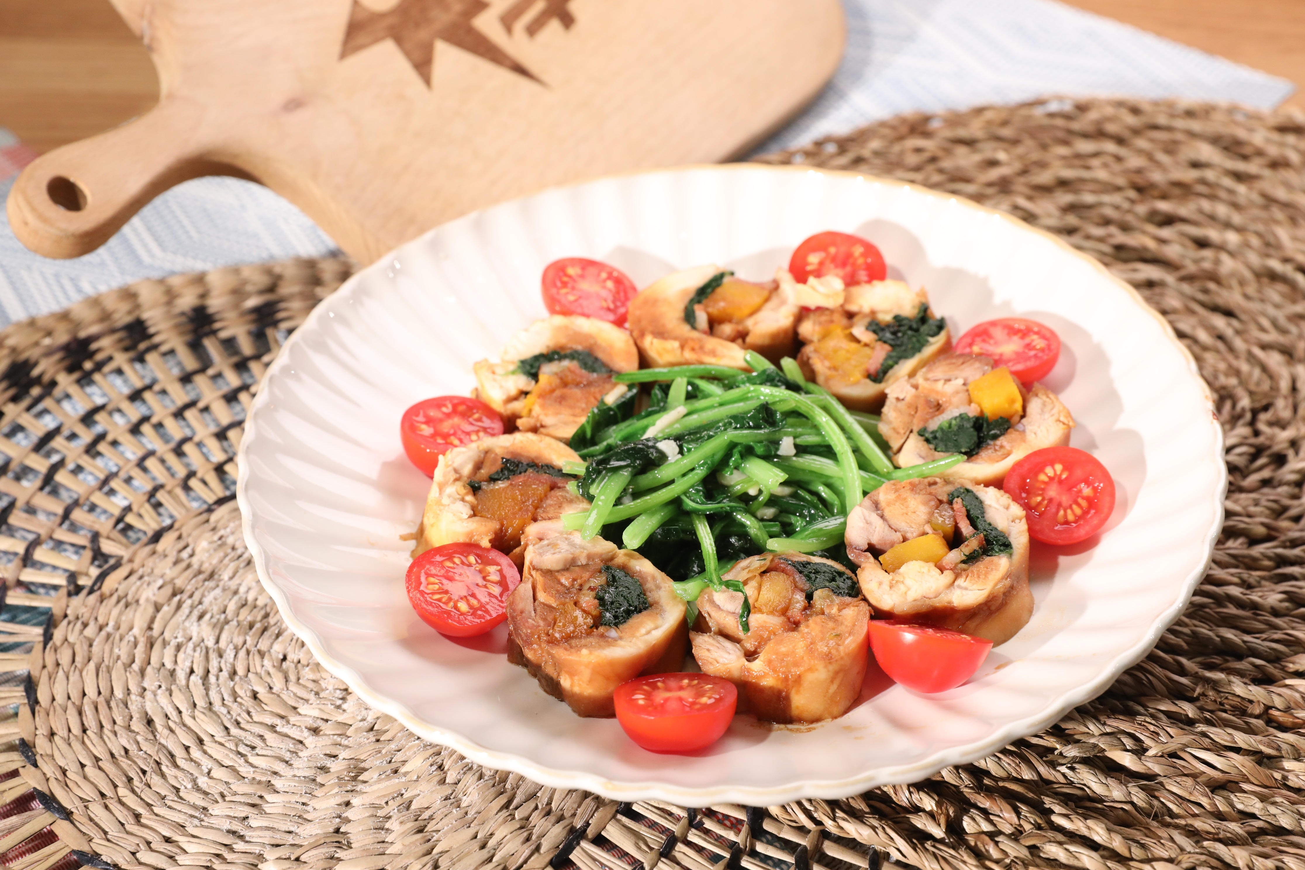 南瓜菠菜雞卷 佐雞油菠菜
