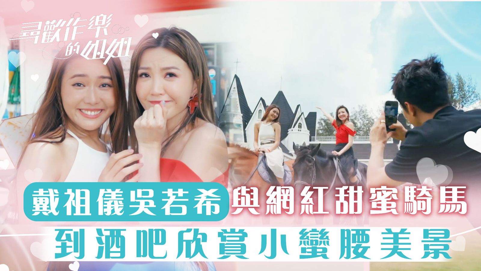尋歡作樂的姐姐|戴祖儀吳若希與網紅甜蜜騎馬 到酒吧欣賞小蠻腰美景點讚分享撰文:蘇打星星 發佈日期:2026-01-09 15:39【尋歡作樂的姐姐】戴祖儀吳若希與網紅甜蜜騎馬 到酒吧欣賞小蠻腰美景《尋歡作樂的姐姐》麥玲玲、吳若希、戴祖儀同游嘉欣,到深圳同廣州遊玩。有位網紅會同吳若希、戴祖儀一齊甜蜜騎馬。吳若希仲大膽要小鮮肉抱佢落馬,之後到佢哋就去酒吧欣賞小蠻腰美景。邊飲酒邊睇靚景。好正呀!地址:深圳市龍崗區大鵬葵湧溪湧社區 上洞村深葵路551號地址:深圳市南山區僑新路 華僑新村- 13號樓尋歡作樂的姐姐|星期一至五 晚上 10:30|翡翠台#尋歡作樂的姐姐#戴祖儀#吳若希#游嘉欣