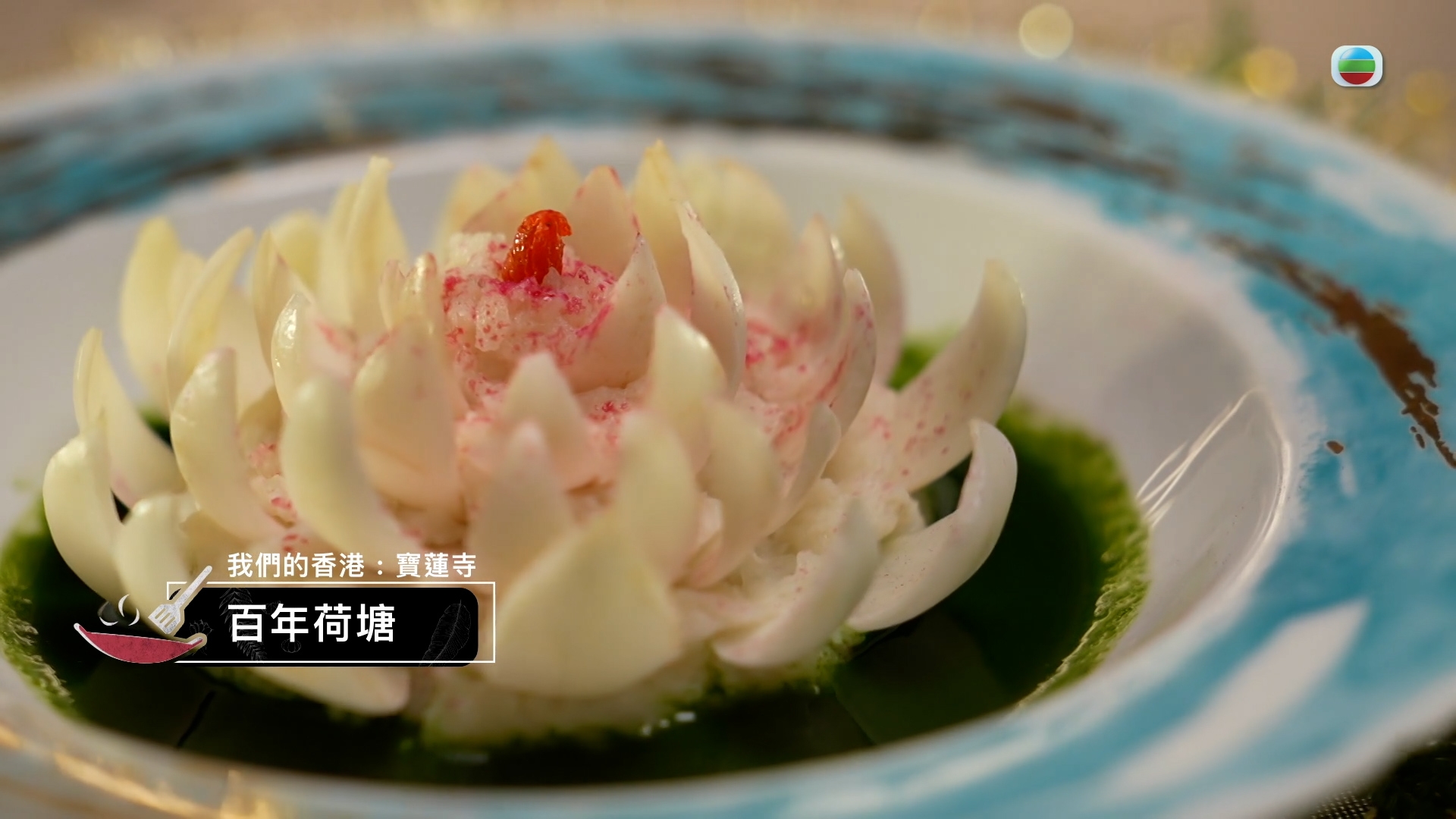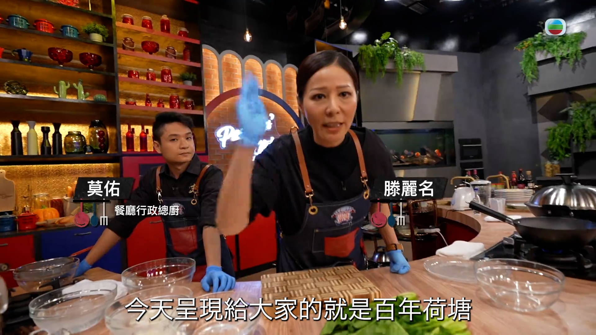 《拍檔廚房》滕麗名同莫佑合作一道:百年荷塘,小編見到已經覺得好靚,仲好有佛門氣息!非常啱寶蓮寺呢一個主題啊!各位試食完仲大讚不絕!