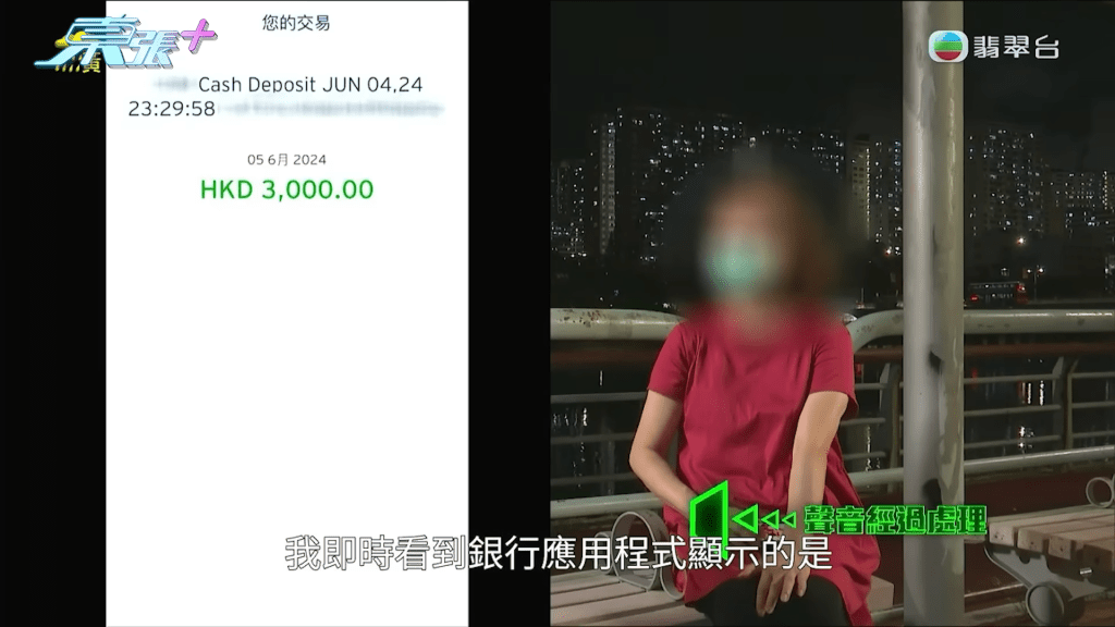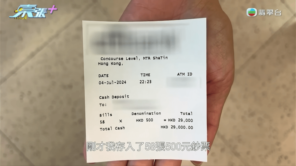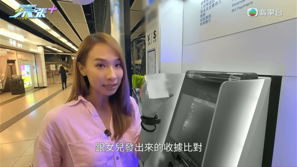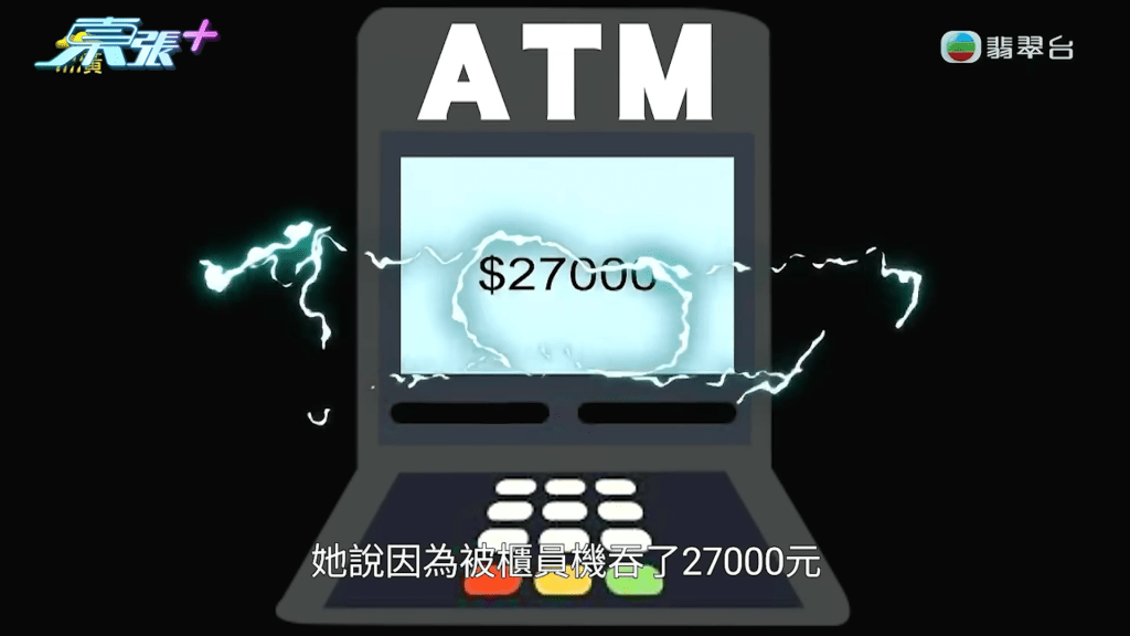 陳女士向《東張西望》透露,自己早前吩咐女兒將3萬元港幣存款,共60張500元紙幣,存入自己的信用卡戶口,女兒陳小姐(化名)亦親自在節目解說當時透過櫃員機入錢的情況,表示自己在櫃員機前,「有數過係60張500蚊」,她根據指示按鍵後,便將紙幣放入櫃員機,並指當時螢幕有顯示「500元 x 60」,她看清楚後才按確定,而當時她見到收據亦顯示總數是3萬元,並在走到巴士站後,將收據拍下,透過WhatsApp傳給媽咪。