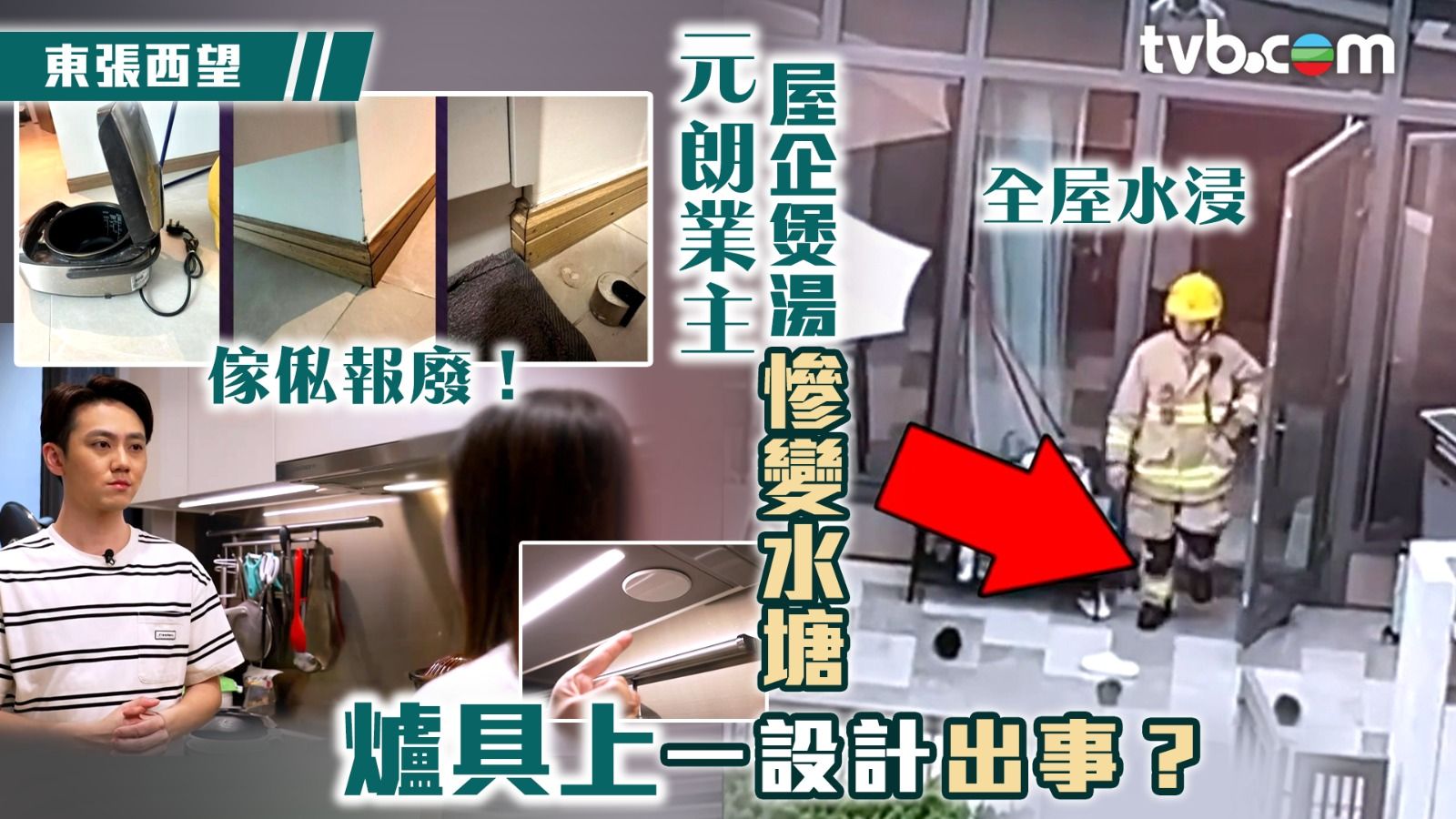 《東張西望》昨晚(12日)收到一名居住於元朗新樓的苦主徐小姐報料,稱屋企慘變「水舞間」,而元兇竟然是家中開放式廚房的消防花灑頭?!