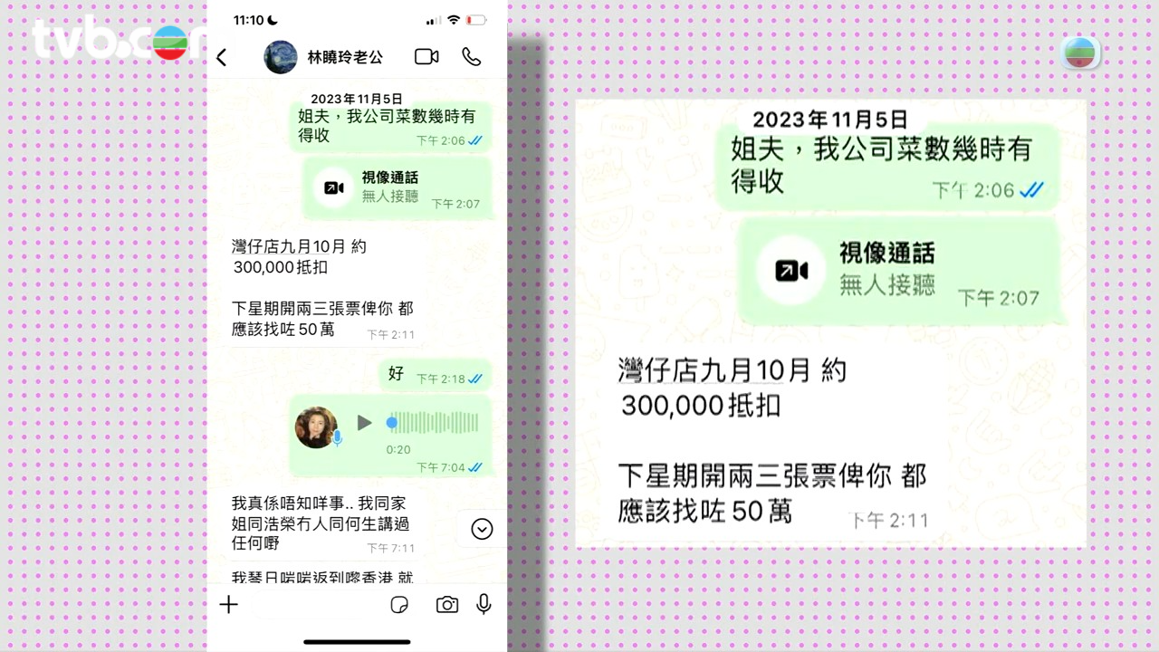 林小姐表示灣仔店向他們的紅磡凍肉加工場取貨,他沒辦法直接付清肉錢,擁有灣仔店股份的英姑於是提議,以向紅磡店供應的菜錢抵扣對方的肉錢。然而,對方中途變卦,又叫林小姐向灣仔店直接收回肉錢,並要求林小姐付清200多萬的菜錢。