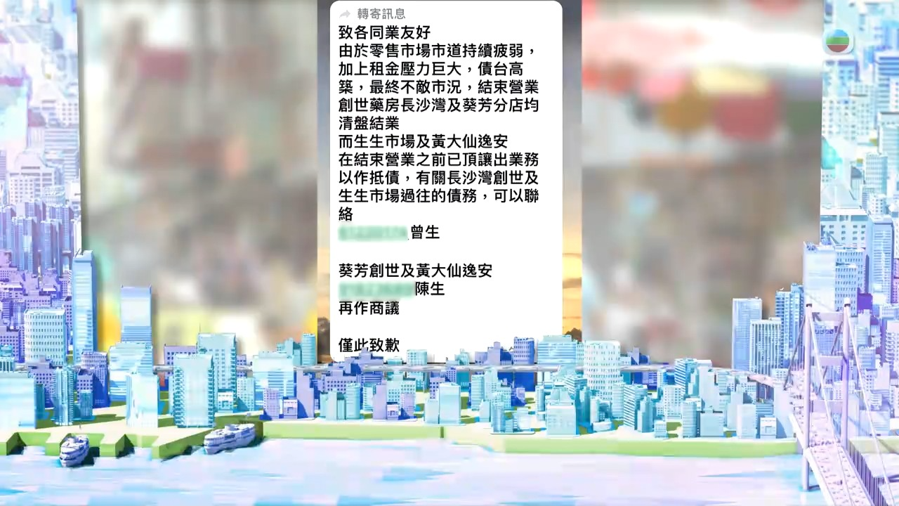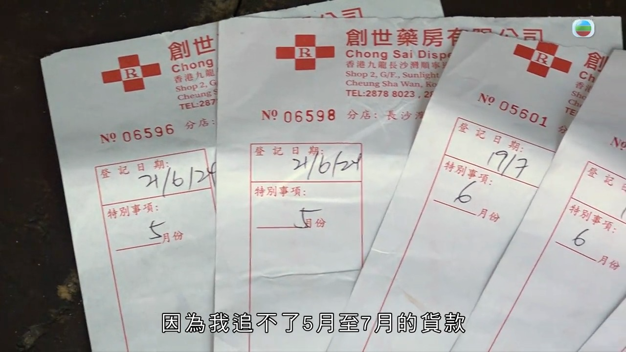 食品批發店經紀陳先生,過去兩年向藥供應茶葉、乾果等食品給藥房,雙方合作無間,貨款繳交向來準時,不過前兩個月出現不妥。陳先生指:「佢哋銀根好緊,催促過佢哋好多次,一日我甚至要打三四次電話,佢都冇覆。」未曾想在上月21日,收到藥房結業的噩耗,最令其憤怒的是:「佢明知自己執笠,仲喺執笠前買大量貨,然後漏夜車走,即係有意欺詐我哋。」結業訊息上面留有兩名陳姓及曾姓男子的聯絡方式,記者黎寬怡致電藥房負責人,對方明顯迴避,更表示不認識陳先生。![]()