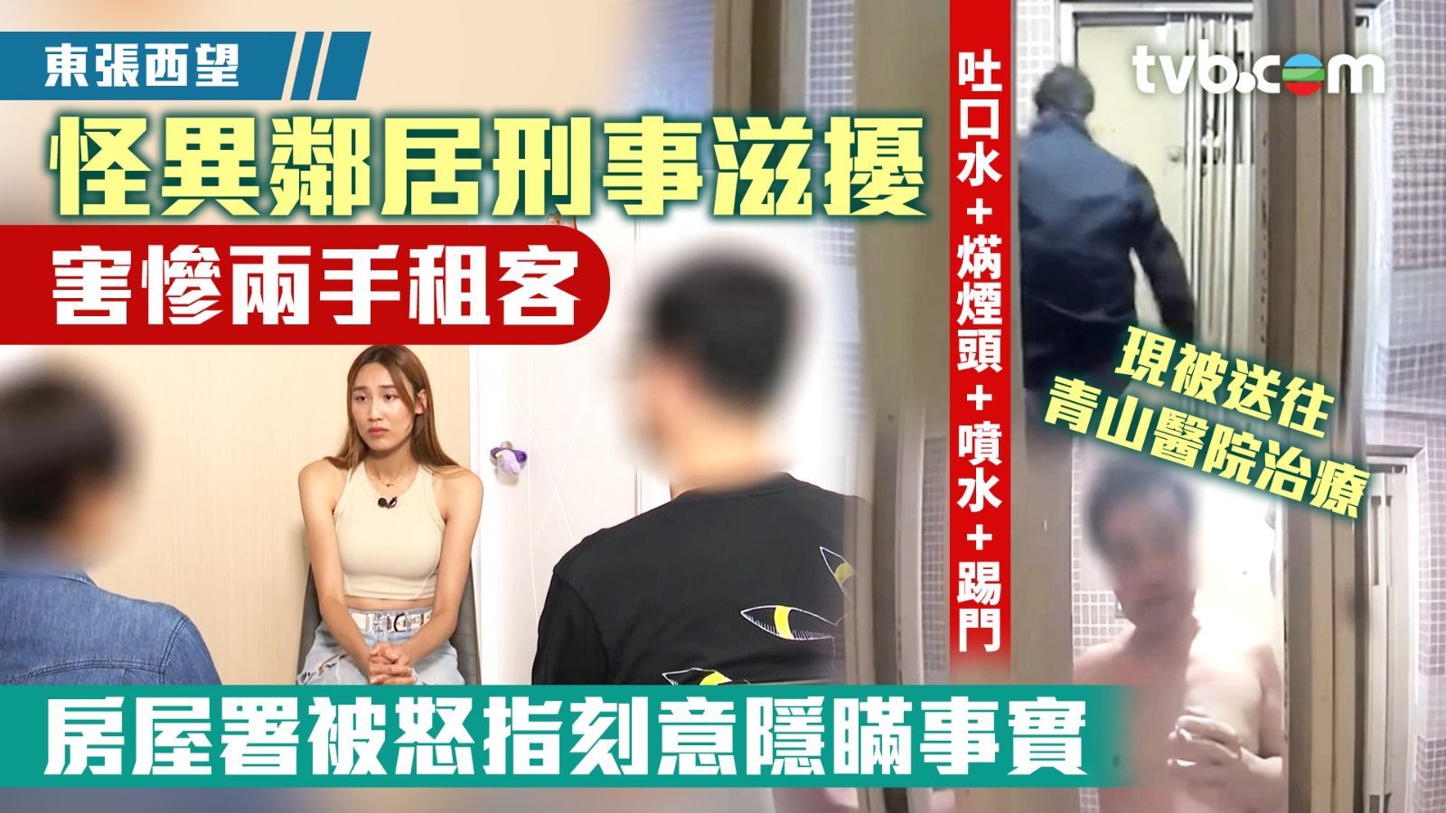 東張西望天水圍怪異鄰居事件!《東張》今個月初曾經報道,陳氏一家人苦等10年「排到公屋」,入住天水圍天慈邨。一家人搬入僅僅3個月後,隨即慘遭怪異鄰居滋擾。該名怪男自稱有精神病及戀童癖,甚至恐嚇事主「十倍奉還」,令陳氏一家不敢回家!